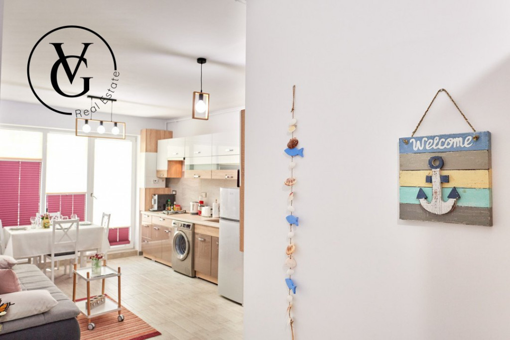Va propunem spre vanzare un apartament open-space , de 3 camere , cu vedere catre mare, la etajul 4, complex Alezzi Beach Resort, bloc C- primul rând de blocuri . Mobilat complet si utilat,se preda exact ca in prezentare . Nu a fost închiriat extrasezon , stare foarte buna . Dispune de o suprafață utila de 58 mp + 2 balcone de 5,3 și 8 mp mp cu vedere libera către mare . Apartamentele sunt situate la un pas de plaja, unde va puteti bucura de soare si mare, pe parcusul intregului sejur Resortul dispune de 2 piscine pentru adulti, 1 piscina animata pentru copii, un spa complet utilat cu sauna umeda / uscata, piscina interioara. sala de forta / fitness si jacuzzi, 2 locuri de joaca pentru copii exterioare, farmacie, gelaterie, multiple spatii verzi si curti interioare spatioase. La parterul blocurilor gasiti 4 restaurante cu specific diferit(,italienesc,turcesc,grecesc,romanesc) unde puteti savura preparate proaspete si variate,gelaterie,farmacie,bancomat,supermarket, café-bar+shisha bar. Persoana juridica, tva inclus . Se poate achizitiona garaj , separat . Pentru detalii suplimentare nu ezitati sa ma contactati. Id intern: P115756