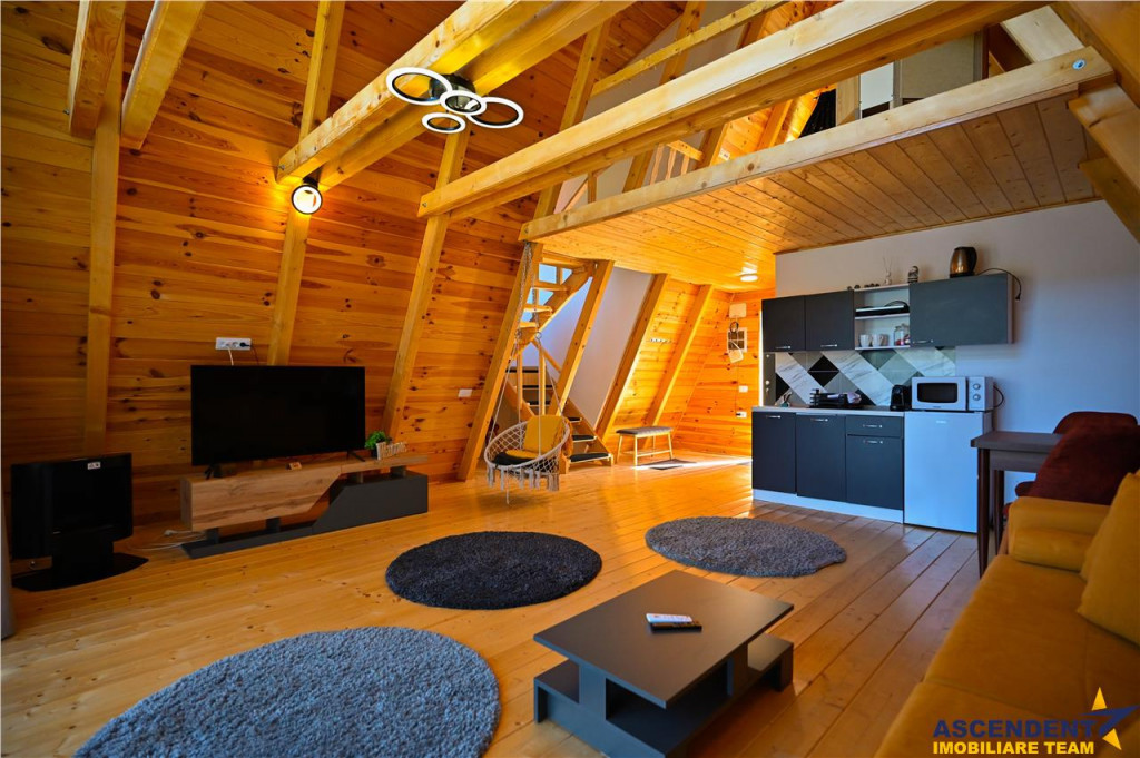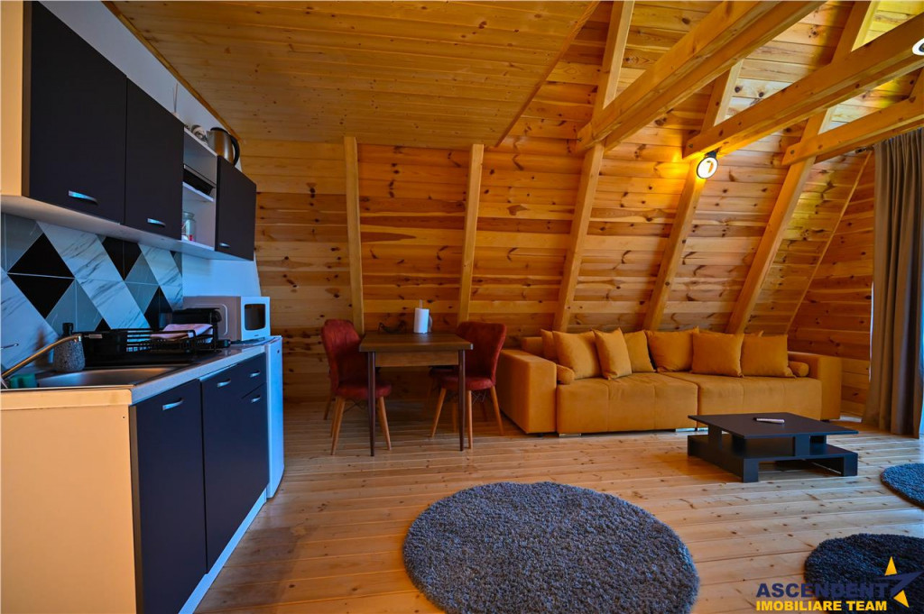 Comision inchiriere: 50% TVA, din contravaloarea unei chirii lunare, o singura data. ASCENDENT IMOBILIARE propune spre inchiriere un ansamblu rezidential deosebit, tip A Frame, situat in una dintre cele mai cautate zone turistice ale Romaniei, Moieciu de Jos, Brasov. Va invitam sa experimentati o vizionare initiala, din locatia unde va aflati, chiar acum, prin accesarea a filmului de prezentare: Film prezentare: https://www.youtube.com/watch?v=_c2_rVbGvM8 Proprietatea beneficiaza de un teren generos in suprafata de 5700 mp, oferind un cadru natural spectaculos, cu peisaje montane care iti taie rasuflarea si un potential deosebit atat pentru locuire, cat si pentru dezvoltarea unei afaceri de succes in domeniul turismului. Aceasta oferta include transfer de business, ceea ce o transforma intr-o oportunitate rara, pregatita pentru cei care doresc sa investeasca intr-un concept modern si atractiv, cu sanse reale de dezvoltare si profit. Arhitectura tip A Frame aduce un aer cosmopolit si elegant, imbinand armonios liniile simple si moderne cu farmecul materialelor naturale, creand astfel un ambient cald si primitor, perfect pentru relaxare si confort. Ansamblul de case, finalizat in anul 2025 este complet mobilat si utilat, fiecare locuinta fiind dotata cu mobilier de calitate, bucatarie complet echipata si utilata, aparate electrocasnice moderne, aer conditionat si finisaje deosebite care imbina eleganta cu functionalitatea. Fiecare unitate este conceputa cu grija pentru a oferi luminozitate, spatii functionale si o atmosfera de vacanta permanenta, toate acestea fiind completate de calitatea constructiei, realizata din beton armat si lemn, cu finisaje atent alese si dotari moderne. Pozitionarea ansamblului este una excelenta, intr-o zona linistita, dar totodata usor accesibila, ideala pentru cei care cauta atat refugiu in mijlocul naturii, cat si apropiere de principalele obiective turistice ale Branului si ale intregii zone montane. Cu un teren atat de generos, proprietatea permite dezvoltari ulterioare, extinderi si diversificari ale conceptului, oferind astfel posibilitatea de a contura o afacere prospera si durabila, cu multiple directii de exploatare. Aceasta oportunitate imbina intr-un mod spectaculos confortul unei locuinte moderne cu potentialul unei investitii sigure si profitabile, fiind alegerea ideala pentru cei care viseaza la un proiect rezidential sau turistic intr-o zona de o frumusete aparte, unde linistea naturii se intalneste cu eleganta si rafinamentul arhitecturii contemporane. Desigur ca particularitatea ofertei si detaliile particulare, ce o configureaza, invita la cunoasterea in detaliu! Consilier dedicat acestei oferte: domnul Florin Tonu 0721 218 273 Detalii, fotografii suplimentare si alte variante exclusive : www.ascendentimobiliare.ro