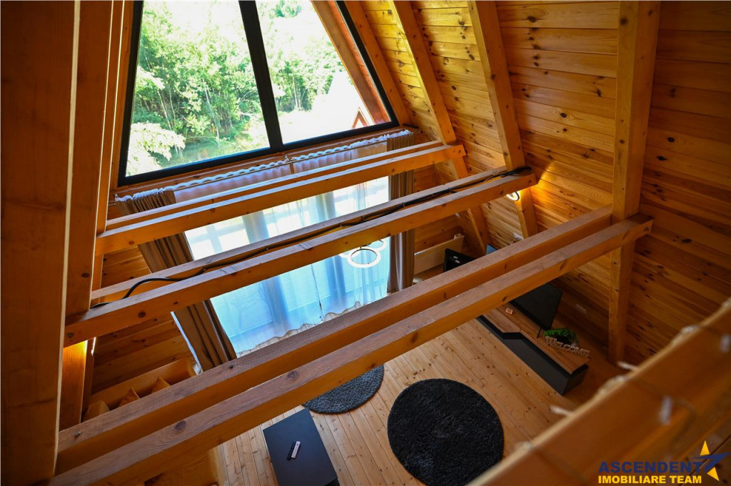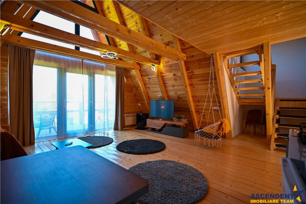 Arhitectura tip A Frame aduce un aer cosmopolit si elegant, imbinand armonios liniile simple si moderne cu farmecul materialelor naturale, creand astfel un ambient cald si primitor, perfect pentru relaxare si confort.