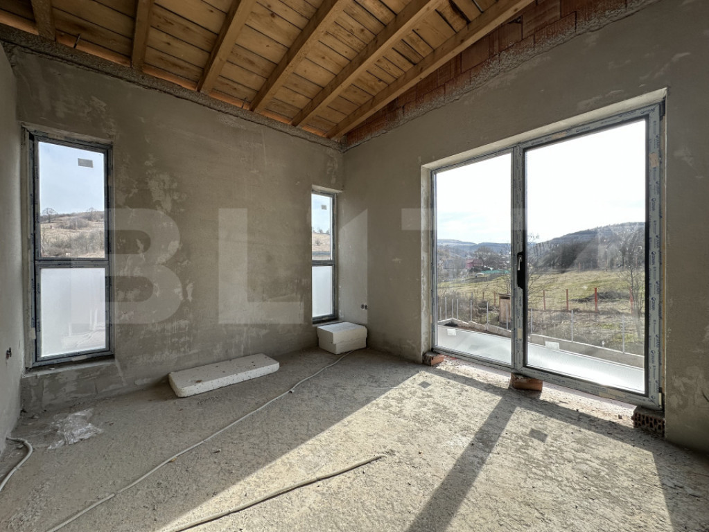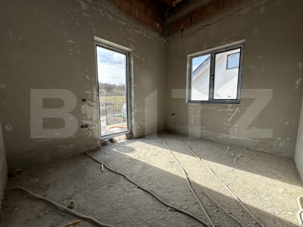 Blitz va ofera spre vanzare o casa individuala situata in Mera, intr-un ansamblu privat de case, fiind o constructie pe fundatie de beton, cu zidarie din caramida, izolata termic la exterior, si dispusa pe doua niveluri (PE) cu urmatoarea compartimentare: - parter (60 mp utili): living, bucatarie, camara, 1 baiE si o terasa de 14 mp; - mansarda (60 mp): 3 dormitoare (din care 1 este matrimonial cu baie si balcon propriu) si inca o baie separata ce deserveste celelalte 2 dormitoare; Ceea ce face proiectul sa fie unul deosebit este stadiul de predare si nivelul de echipare al casei: - geamuri termopan profil Veka cu 3 foi de sticlă și 6 camere - sistem de incalzire in pardoseala cu automatizare pentru parter, prin centrala performanta pe peleti - mansarda izolata cu vata minerala de 10 cm si folie de aluminiu - sapa turnata la mansarda - structură de lemn ignifugată și tratată - curte amenajata - parcare betonata - trotuare pavate în jurul casei La acest moment casa se afla in curs de EXECUTIE, fiind parte dintr-un ansamblu privat de 6 case. LA PRETUL AFISAT, SE ADAUGA TVA 21%! Daca iti place natura si iti doresti acces usor spre infrastructura rutiera, inclusiv autostrada Transilvania, oferta aceasta este pentru tine. Contacteaza-ne pentru mai multe informatii si pentru a programa o vizionare a proprietatii! Cod ofertă / ID BLITZ: P143479 Id intern: P143479