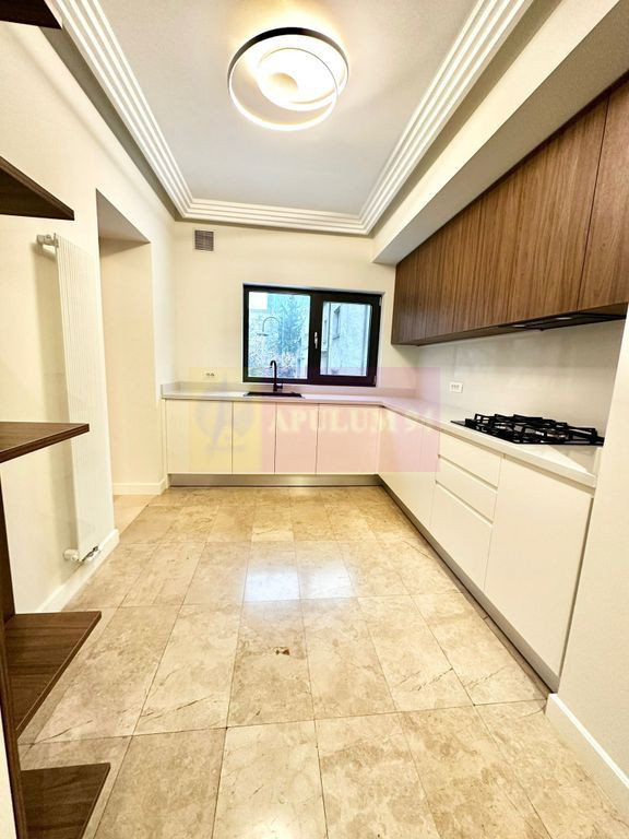 4 camere decomandate, situat în ansamblul Washington Residence, la etajul 1/4, cu 180 mp utili, 2 terase (14 mp și 9 mp), loc de parcare în garaj subteran și boxă de depozitare incluse. Conditii inchiriere: - Parcare subterană + boxă incluse - Preț chirie: 3350 €/lună + TVA - Se achita 2 luni garantie + 1 luna chirie. Contract minim 12 luni. Disponibil imediat. Caracteristici generale: Living generos de 53 mp cu zonă de dining + acces la terasa principală Bucătărie închisă, complet mobilată și utilată (electrocasnice noi) Dormitor matrimonial cu dressing + baie proprie (cadă + cabină duș, obiecte sanitare premium) 2 dormitoare secundare, ambele cu dressing; unul are acces la a doua terasă 2 băi suplimentare + grup sanitar pentru oaspeți Hol de intrare spațios, cu dressing încorporat Dotări și finisaje: Centrală termică proprie, calorifere noi Climatizare centralizată cu ventiloconvectoare și termostate în fiecare cameră Parchet, marmură, ceramică – finisaje impecabile Termopan aluminiu, rulouri electrice, plase insecte Acces garaj automatizat prin recunoaștere număr Videointerfon, internet fibră, cablu TV Contorizare separată: apă, gaz, electricitate Clădire eficiență energetică clasa A Despre complex: Washington Residence oferă pază permanentă, monitorizare video 24/7, sală de fitness, spații verzi, locuri de joacă, acces rapid către zone comerciale, birouri, parcuri, școli și restaurante.
