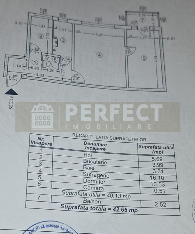 Agentia Perfect Imobiliare va ofera spre vanzare un apartament cu 2 camere, confort 2, nedecomandat in zona Vest - Lacul Balea. Apartamentul se afla la etajul 1 , are o suprafata utila de 40.14mp, blocul a fost construit in anul 1978 din beton, este un apartament de mijloc ceea ce ii confera caldura si confort. Apartamentul NU mai necesita imbunatatiri, viitorul proprietar avand posibilitatea de a-l folosi atat ca si propria locuinta, dar si ca investitie,pentru inchiriere. Imobilul este situat intr-o zona foarte linistita, fara trafic stradal, fara vecini galagiosi, iar scara este foarte curata. In zona de asemenea se pot gasi atat scoli si gradinite cat si magazine, statii pentru mijloace de transport in comun, farmacii etc. Apartamentul are urmatoarele imbunatatiri: -aer conditionat -SEPARATIE GAZE - gresie - faianta -parchet - usa metalica -geamuri termopan -IZOLAT TERMIC. !!!SE VINDE MOBILAT SI UTILAT!!! Proprietarul detine toate documentele necesare vanzarii iar pretul de vanzare al imobilului este de 43500 euro . ID 4024 Pentru detalii suplimentare si vizionari ne puteti contacta la nr.O72459O344 sau O726928.227.