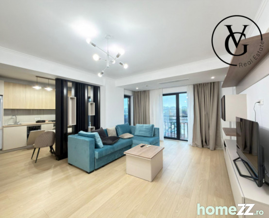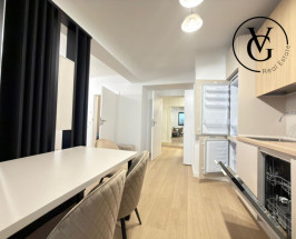 Apartament luminos și bine compartimentat, cu mobilier modern și funcțional. Living confortabil, dormitor spațios cu dressing generos, bucătărie complet echipată cu electrocasnice necesare și baie amenajată cu finisaje bune. Balconul oferă un spațiu util în plus, iar apartamentul dispune de zone de depozitare eficiente, integrate discret.