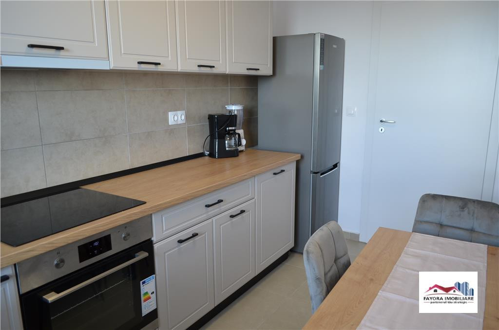 Ap. 2 Camere Mobilat si Utilat cu Parcare Privata de Inchiriat Maurer Fayora Imobiliare va ofera spre inchiriere un apartament nou, cu doua camere, complet mobilat si utilat modern, avand suprafata de aproximativ 60 mp utili. Imobilul este total decomandat si este compus din: un living spatios, un dormitor, o bucatarie, o baie, doua holuri si un balcon generos cu acces atat din living cat si dormitor. Apartamentul este dotat cu: aer conditionat, centrala termica, geamuri termopan, parchet, gresie, faianta si este utilat cu: frigider, plita si cuptor incorporate, hota, masina de spalat rufe, televizor. Imobilului ii apartine o boxa si un loc de parcare privat. In apropiere se afla magazine, statie de autobuz, piata, restaurante, scoala, clinici medicale, etc. Pretul de inchiriere lunar, cu parcare privata inclusa, este de 450 euro. Contactandu-ne pe noi, daca sunteti clienti cumparatori beneficiati de servicii de consultanta gratuita si nu vi se va percepe comision. Suntem pregatiti si hotarati sa va oferim cele mai bune solutii in domeniul imobiliar, fie ca este vorba de cele mai competitive preturi, oferte personalizate conform cerintelor dvs. sau de asistenta pe intreaga durata a efectuarii tranzactiei. Cu responsabilitate, echipa Fayora Imobiliare face ca lucrurile sa se concretizeze, face ca oamenii sa isi indeplineasca visurile.
