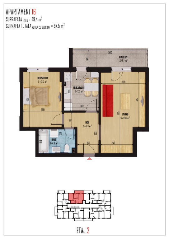 Ap.2 camere-58 mp-Etaj 2-Stradal Smirdan