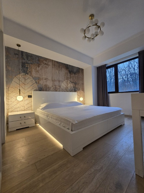 Propunem spre închiriere un apartament elegant, situat într-o zonă exclusivistă și liniștită din Pipera, la etajul 1 al ansamblului rezidențial Forest Hill, str. Iancu de Hunedoara nr.17. Cu vedere spectaculoasă către Pădurea Băneasa, această proprietate oferă un confort desăvârșit, intimitate și acces facil către toate instituțiile private de învățământ din zona str. Erou Iancu Nicolae. Detalii apartament: Suprafață utilă: 92 mp Configurație: 3 camere spațioase, 2 băi, dressing, terasă generoasă. Toate spatiile interioare și terasa au vedere directă spre pădure. Dotări: Mobilat Mobexpert si utilat complet (TV, MSR,MSV,Plita, Cuptor electric, Hota), încălzire prin pardoseală, aer condiționat în toate camerele. Renovare: Recent renovat, pregătit pentru mutare imediată. Facilități: 2 Locuri de parcare subteran si suprateran, boxă generoasă, locuri suplimentare disponibile în proximitate. Avantaje locație: Adresă: Str. Iancu de Hunedoara nr. 17, în vecinătatea străzii Erou Iancu Nicolae. Instituții de învățământ de prestigiu în apropiere: British School (800 m), Cambridge School (1.500 m) Japanese School (1.700 m), Little London (700 m) Mark Twain (1.400 m) Termeni de închiriere: Contract pe termen lung (minimum 1 an) Garanție: 2 luni chirie + 1 lună în avans Disponibilitate: începând cu 1 ianuarie 2026. Fără comision, direct de la proprietar. Dacă sunteți în căutarea unei locuințe premium, într-un cadru natural liniștit și aproape de facilitățile orașului, acest apartament este alegerea perfectă. Contactați-ne pentru detalii sau programarea unei vizionări! Disponibil incepand cu data de 1 ianuarie 2026. Elegant Apartment for Rent – Forest Hill, Pipera An elegant 3-room apartment is available for rent in the exclusive Forest Hill residential complex, Iancu de Hunedoara Street, No. 17, Pipera. Located on the 1st floor, it offers stunning views of Băneasa Forest, ultimate comfort, and easy access to prestigious schools in the Erou Iancu Nicolae area. Key Features: Size: 92 sqm, 3 rooms, 2 bathrooms, walk-in closet, large terrace with forest views Fully furnished (Mobexpert) and equipped (TV, washing machine, dishwasher, stove, electric oven, hood) Amenities: Underfloor heating, air conditioning, underground parking, storage room Location: Close to British School (800 m), Cambridge School (1,500 m), Japanese School (1,700 m), Little London (700 m), Mark Twain (1,400 m) Rental Terms: Minimum 1-year contract Deposit: 2 month + 1 month in advance availability from 1st January 2026, no commission (direct owner) Contact us for more details or to schedule a visit!