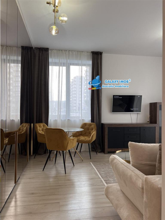 Oferta Exclusiva. Avem cheile proprietatii. Prima inchiriere apartament 2 camere complet mobilat utilat Baneasa Complex Greenfield Residence. Va propun spre inchiriere un apartament cu 2 camere cu o suprafata totala de 60 mp si un loc de parcare in apropierea cladirii, inclus in pret. Este situat la parterul unui imobil cu 10 etaje, care a fost construit in anul 2024. Apartamentul este foarte bine compartimentat fiind compus din living, bucatarie, 1 dormitor, 1 grup sanitar, hol si 1 terasa cu gradina verde cu acces din living. Dispune de finisaje de calitate: aer conditionat, tamplarie PVC cu geam termopan, CATV, internet, usa metalica, centrala de bloc. Amenajarile realizate sunt echilibrate, fiind imbinate elemente decorative clasice cu elemente moderne, in tonuri calde. Apartamentul este mobilat si utilat complet dispunand de masina de spalat vase, masina de spalat rufe, frigider cu congelator, plita si hota, cuptor, etc putand fi caminul confortabil pentru o familie sau un cuplu. Imobilul este situat in zona Baneasa - Complex Greenfield, o zona foarte linistita, imprejmuita de padure. Complexul dispune de: loc de joaca pentru copii, spatiu de agrement ce dispunde de o piscina interioara semi- olimpica si piscina exterioara, farmacie,supermarketuri, spatii verzi generoase, administrare, paza permanenta, iluminat exterior, canalizare,cabinete medicale,restaurante. Pretul de inchiriere este de 750 euro/luna TVA. Comisionul agentiei este de 50% din pretul de inchiriere achitabil la inceputul contractului de inchiriere. Informatii eficienta energetica: Clasa energetica: A Consumul de energie primara: Indicele de emisii echivalent CO2: Consum de energie din surse regenerabile: