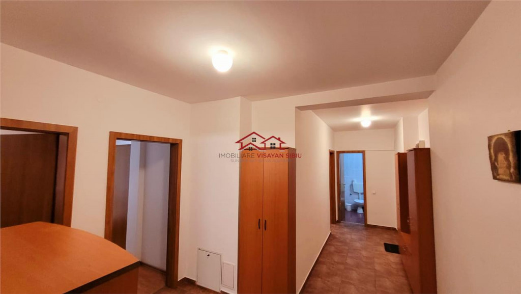 Apartament exclusivist 3 camere Selimbar ndash; eleganta, spatiu si rafinament Va prezentam spre inchiriere un apartament deosebit cu 3 camere, situat intr-una dintre cele mai apreciate zone din Selimbar, pe strada Mihai Eminescu, in imediata apropiere a supermarketului Lidl si la doar cateva minute de Shopping City Selimbar. Pozitionarea excelenta ofera acces rapid catre centrul istoric al Sibiu, precum si catre principalele artere rutiere si autostrada, imbinand armonios linistea rezidentiala cu mobilitatea urbana. Un spatiu care redefineste confortul: Cu o suprafata utila generoasa de 86 mp (99 mp construiti), completata de o logie eleganta (terasa exterioara) de 13,48 mp, apartamentul este situat la etajul 1 si impresioneaza prin luminozitate, functionalitate si design echilibrat. Compartimentarea inteligenta il recomanda atat pentru locuire premium, cat si pentru activitati profesionale sau remote work: hol amplu, primitor dormitor matrimonial cu acces direct la balcon birou / zona de dining ndash; ideal pentru home office sau meeting space living spatios open-space cu bucatarie moderna baie principala cu cada grup sanitar de serviciu balcon logie ndash; perfecte pentru relaxare sau lucru de acasa loc de parcare privat inclus Detalii care fac diferenta: mobilier modern si finisaje de calitate superioara bucatarie complet echipata spatii aerisite, optim organizate acces securizat in imobil izolatie termica si fonica excelenta (ideal pentru lucru de acasa) ambianta eleganta, potrivita pentru locuire, birou sau activitati profesionale Locatie premium: In proximitate se regasesc toate facilitatile necesare unui stil de viata modern: supermarketuri, scoli, gradinite, transport public, zone comerciale si acces rapid catre zonele de business. Conditii de inchiriere: Pret: 499 euro; / luna (negociabil in functie de contract) Animale de companie: acceptate Comision: 0% pentru contract minim 2 ani garantie 2 chirii 50% pentru contract 1 an garantie 1 chirie