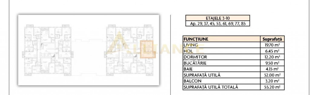 Suprafața utilă 55 m²