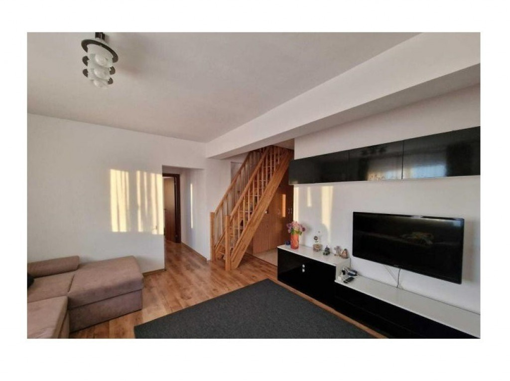 Apartament 4 camere, 2 bai, dressing + debara dispus pe 2 nivele intr-ul bloc construit in 2011 intr-o zona de case, suprafata totala 110m2. Blocul are curte interioara suficient de mare pt parca o masina per apartament, cu acces prin poarta cu telecomanda . Ca dotari, 2 AC, centrala termica, masina de spalat vase, cuptor electric, plita pe gaz. La mansarda este amenajat un spatiu de joaca pt copii pentru a putea profita de timp de calitate in perioadele prea insorite sau friguroase . Distanta de statia de metrou Aparatorii Patriei este de 600m, in zona fiind gradinita de stat si privata, iar supermarkets la cca 5 min de condus.
