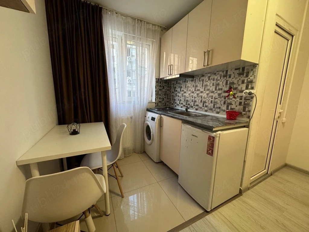 garsoniera complet mobilata pentru mutare imediata. Preferinta pentru inchiriere pe termen lung. Chirie lunara de 1200 lei. Se percepe 1 luna garanție. Detalii: Complet Mobilat si Dotat intr-un Complex Rezidential Privat, cu spatii verzi, acces securizat in Bloc si la intrarea in complex. Complexul este situat in Sectorul 4, Bucuresti! Delimitare în jurul Complexului de celelalte blocuri. * 200 m pana la statia mijloacelor de transport 125, 141, 220, 241, N105. * bucataria este complet mobilata si utilata, electrocasnice noi; * blocul este foarte curat si ingrijit (se vede si in poze); *cheltuieli minime, utilitati individuale (curent electric, contor apa rece, contor apa calda, centrala termica pe gaz bloc (NU RADET), APA CALDA SI RECE 24 ORE DIN 24!! GARSONIERA dispune de pat matrimonial cu saltea, complet mobilat (POZE REALE), bucataria este complet mobilata si utilata. Pozitionare: * garsoniera este la etajul 1 si este situata in imediata apropiere a Metroului Aparatorii Patriei; * situat la 200 de metri de multiple statii de transport in comun (autobuz, tramvai); * se afla la o distanta de 7 minute de mers pe jos de Universitatea Spiru Haret; * se afla la 7 minute de mers pe jos de statia de metrou Aparatorii Patriei. * langa Parcul "Tudor Arghezi", langa Metro, Jumbo, Auchan etc. Descriere: *blocarea accesului se face prin interfon; *camere de supraveghere * Complet mobilat si utilat (dulapul, rafturile si bucataria sunt din MDF lucios (vezi poze), masina de spalat rufe, frigider, hota, chiuveta, masa cu 2 scaune, perdea, perdea, pat matrimonial cu saltea. Îmbunătățiri: * usa metalica la intrare; * baie complet utilata * geam termopan; * gresie + faianta in baie si bucatarie. Pentru siguranța familiei dumneavoastră, clădirea a fost construită conform tuturor standardelor actuale.