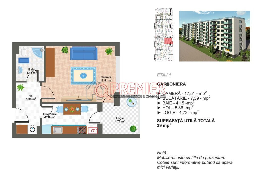 Suprafața utilă 39 m²