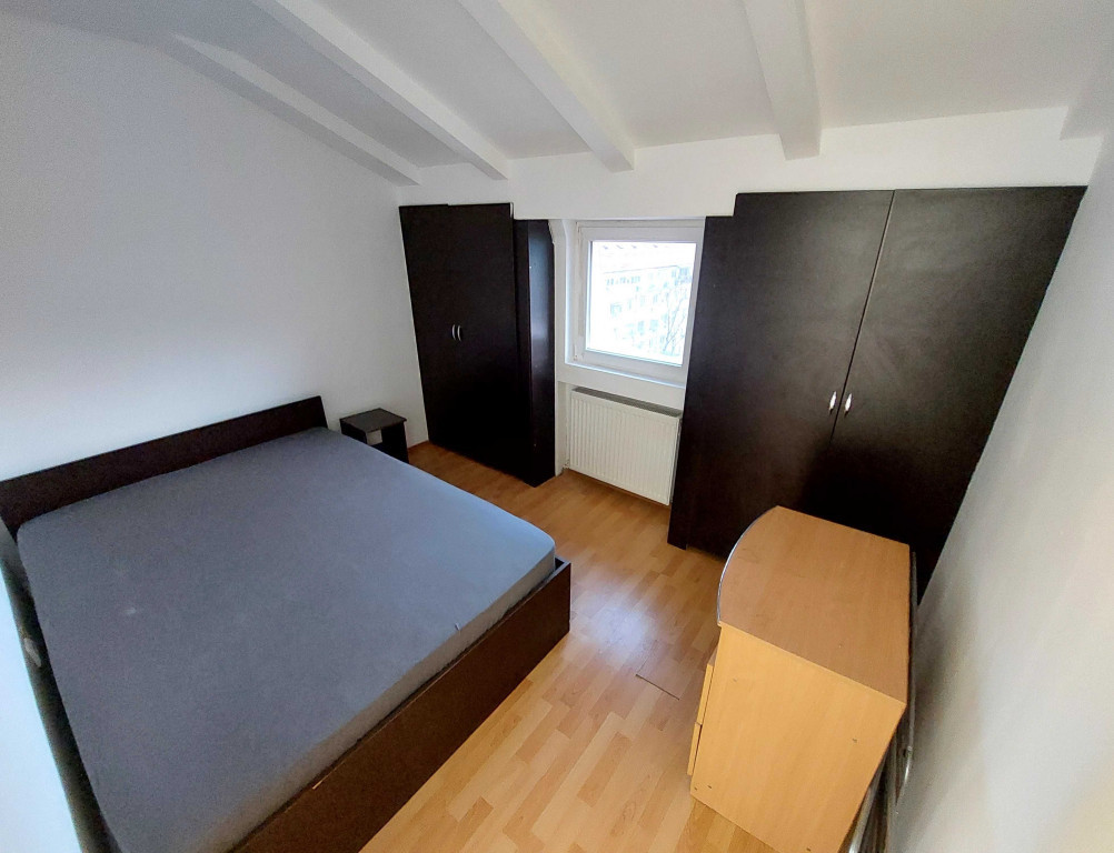 apartament la mansardă mobilat și utilat pe 2 nivele, 39 mp, Apărătorii Patriei. Primul nivel: living+bucătărie open space +balcon. Al doilea nivel: cameră + baie. AC și gaze. În apropiere se află centre comerciale,unități de învățământ, diverse mijloace de transport (metrou la 700 m). Chirie+garanție, maximum 2 adulți+copil mic, fără animale de companie.