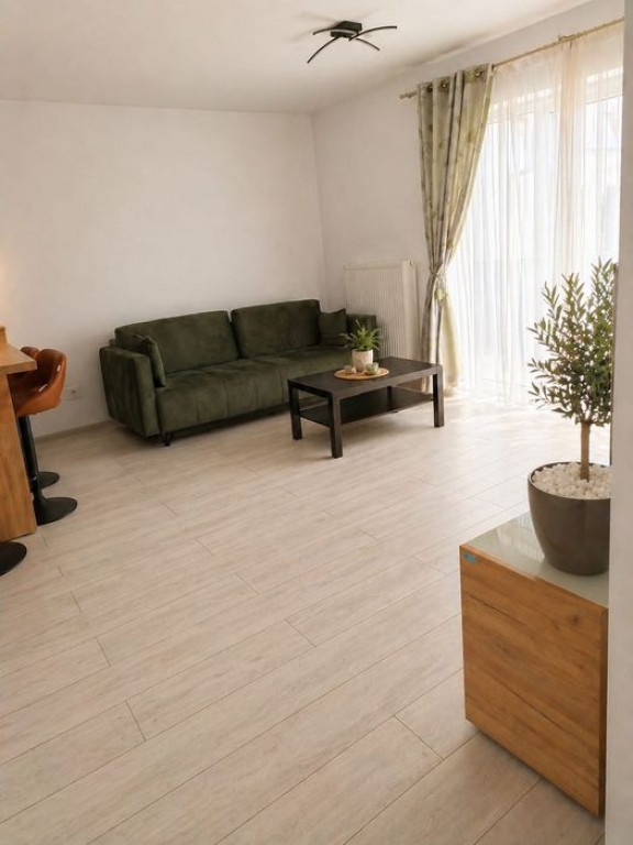 Va propunem spre vanzare un apartament cochet, situat in cartierul Tractorul, Maurer Vilas, intr-o zona rezidentiala nou construita, aflata in continua dezvoltare. Localizare excelenta: In apropiere se regasesc scoli, gradinite, magazine, statii de autobuz si spatii de joaca pentru copii ,ideal atat pentru locuit, cat si pentru investitie. Detalii proprietate: Suprafata utila: 48 mp Suprafata balcon 6 mp Etaj: 2/3 An constructie: 2024 Compartimentare: tip studio Compartimentare inteligenta: Hol de acces Living spatios cu bucatarie open-space Dormitor delimitabil (sistem modern cu panou / perete electric retractabil) Baie cu dus, finisaje moderne (gresie, faianta) Balcon generos cu vedere frumoasa spre Tampa Dotari si beneficii: Complet mobilat si utilat Televizor, frigider, masina de spalat rufe Centrala termica proprie Mobilier optimizat pentru depozitare eficienta (ideal inclusiv pentru familii) Loc de PARCARE propriu, se vinde cu parcare inclusa Boxa la subsol Vecini linistiti Avantaje: Zona aerisita, frumoasa si bine organizata Vedere deosebita catre Tampa Perfect pentru locuit sau investitie Se accepta si credit bancar.COD 7186 .Pret 139000 Euro.