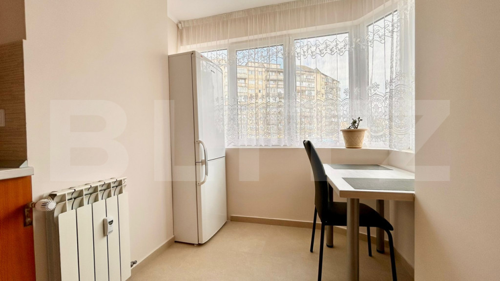 Blitz vă oferă spre închiriere apartament cu o cameră, situat la etajul 1, recent renovat și complet utilat. Locuința este configurată pentru a oferi un grad ridicat de funcționalitate, fiind finisată cu dușumea și dotată cu elementele necesare unei mutări imediate. Dotări și echipamente: Mobilier: Cameră principală prevăzută cu canapea extensibilă. Electrocasnice: Televizor, aragaz, mașină de spălat rufe și aspirator. Finisaje: Recent renovate. Imobilul este situat la etajul 1, facilitând un acces rapid și facil. Spațiul este întreținut, igienizat și pregătit pentru noi chiriași. Cod ofertă / ID BLITZ: P168899 Id intern: P168899