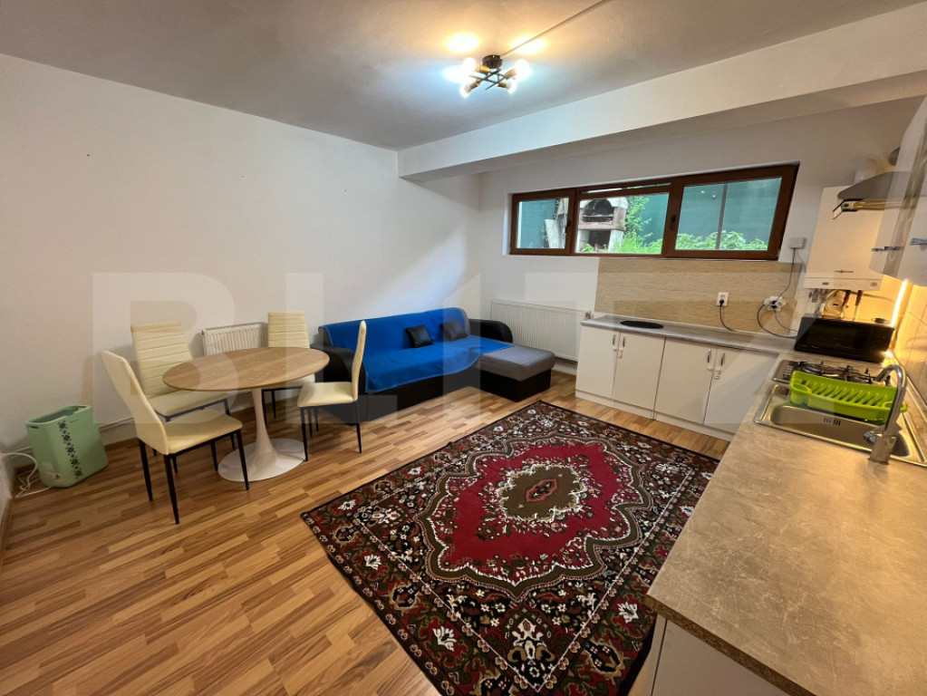 Blitz va ofera spre inchiriere un apartament situat in zona strazii Campului, cartierul Manastur. Imobilul este pozitionat la parter al unui imobil cu 4 etaje, avand o suprafata utila de 70mp. Acesta este compus din 1 camera cu pat de 80x2m, bucataria cu canapea, baie și hol. Beneficeaza de centrala proprie generația noua cu condensare+ wireless, frigider nou, mașina de spălat nou, mocheta noua. La fel apartamentul se poate inchiria si ca spatiu de birou. Se inchiriaza complet mobilat si utilat. Disponibil imediat. Cod ofertă / ID BLITZ: P112415 Id intern: P112415