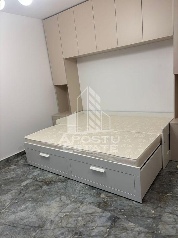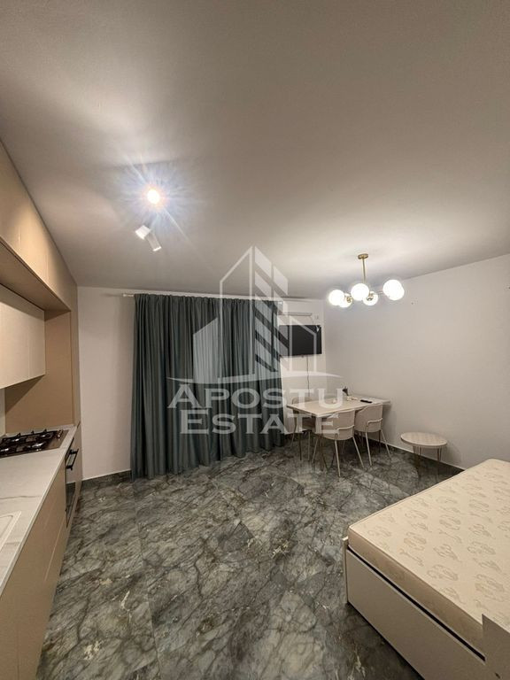APOSTU ESTATE va propune spre inchiriere un apartament spatios si elegant, cu 1 camera, situat intr-o zona linistita si bine conectata din Giroc, ideal pentru persoane care doresc un spatiu confortabil. Suprafata utila: 30 mp Compartimentare eficienta: Hol de acces generos Bucatarie complet mobilata si utilata, cu loc de luat masa Dormitor matrimonial mobilat Baie principala cu cabina de dus Confort si facilitati: Centrala termica proprie pe gaz Aer conditionat Loc de parcare inclus in pret Apartamentul este complet mobilat si utilat Localizare: Zona Giroc – liniste, acces facil spre oras, in apropiere de magazine, scoli si mijloace de transport in comun. Ideal pentru: Cupluri Profesionisti care lucreaza remote sau au nevoie de birou acasa Pret chirie: 310 euro Programeaza o vizionare! ID intern: CP2827787