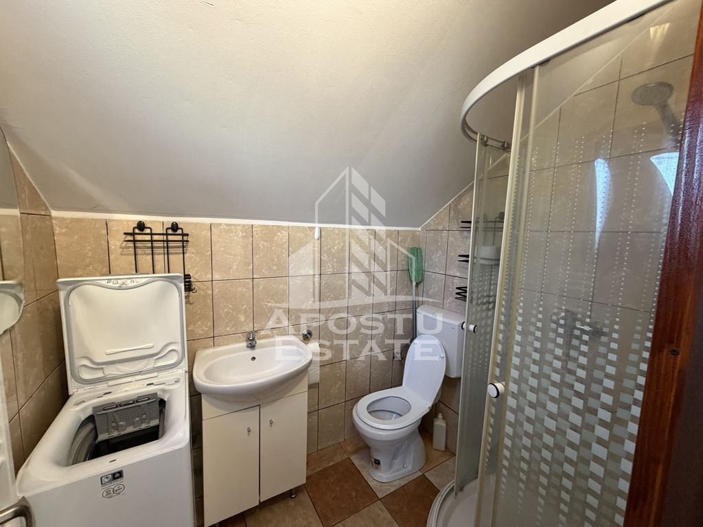 APOSTU ESTATE vă propune spre închiriere un apartament spațios , cu 1 camera, situat într-o zonă liniștită și bine conectată din Chisoda , ideal pentru cupluri sau persoane care doresc un spațiu generos și confortabil. Suprafață utilă: 40 mp Compartimentare eficientă: Bucătărie complet mobilată și utilată Dormitor dotat cu canapea extensibila Baie cu dus și geam pentru ventilație naturală Confort și facilități: Centrală termică proprie pe gaz Aer condiționat Loc de parcare inclus în preț Apartamentul este complet mobilat și utilat Apartamentul are curte comună cu proprietarii Localizare: Zona Chisoda – liniște, acces facil spre oraș, în apropiere de magazine, școli și mijloace de transport în comun. Ideal pentru: Cupluri Profesioniști care lucrează remote sau au nevoie de birou acasă Preț chirie: 270 E Programează o vizionare! ID intern: CP2008145