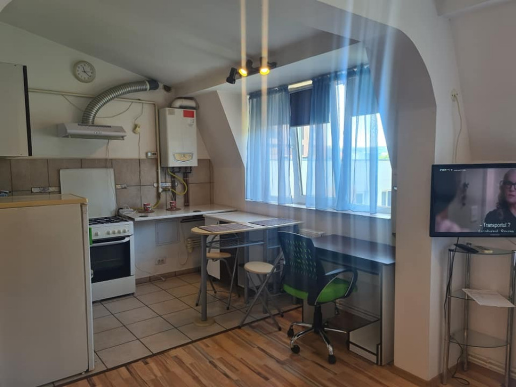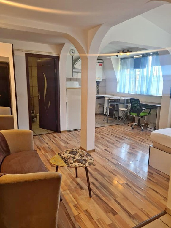e-mobiliareDM va propune, un apartament de 1 camera decomandat, cca34mp, modern mobilat si utilat, in Iasi – PALAS zona “Sf Lazar”. Apartamentul se afla la un etaj mansardat intr-un bloc de 4 nivele din zona amintita si este dotat cu gresie si faianta moderne in hol, baie si bucatarie. Incalzire cu centrala termica proprie, instalatie aer conditionat, tamplarie interioara MDF modern renovat, iar la exterior geamuri termopan PVC, LCD, cablat CATV/ internet, termoizolat. Se inchiriaza complet complet mobilat si dotat cu electrocasnice relativ noi (frigider+ aragaz+ masina de spalat) ca in poze. Se afla in imediata apropiere a PALAS si al statiilor de mijloace de transport in comun din zona (tramvai, autobuz, maxi taxi) avand astfel facil acces catre toate zonele de interes ale orasului. La intocmire contract de inchiriere, se solicita plata chiriei in avans pe prima luna si o garantie returnabila in conditii negociate, egale cu valoarea unei luni de chirie. Pentru detalii sau alte oferte asemanatoare, va putem oferi relatii suplimentare la CALL CENTER 0745 984 394 sau pe pagina de web www.imobiliaredm.ro