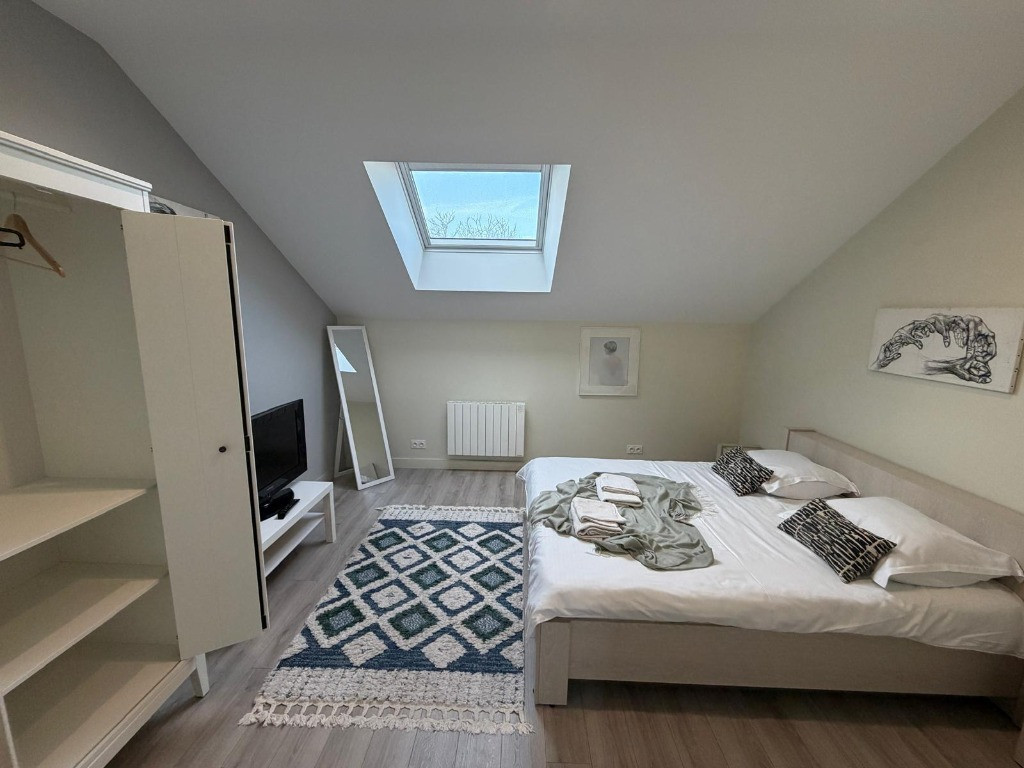 Apartament 1 camera la casa, zona Bujac, etaj 1, semidecomandat, suprafata 55 mp, incalzire radiatoare electrice, parchet, gresie, faianta, geamuri termopan, amenajat modern, casa izolata termic, amplasament foarte bun, mobilat si utilat.
