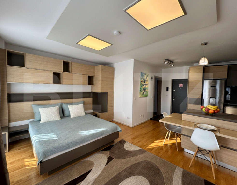 Blitz oferă spre închiriere un studio modern, cu terasă panoramică, situat în cartierul Andrei Mureșanu — alegerea ideală pentru un stil de viață urban, rafinat și confortabil! ✨???? ???? Detalii proprietate – Suprafață utilă: 40 mp – Compartimentare inteligentă: zonă de zi luminoasă cu pat matrimonial, spații generoase de depozitare, bucătărie open-space integrată armonios, baie modernă cu cadă – Terasă cu priveliște panoramică superbă – adevăratul atu al apartamentului ???? – Etaj: 5/8 – Situat într-un complex rezidențial modern, inaugurat în 2018 ✨ Dotări & finisaje premium – Finisat la cel mai înalt nivel, cu materiale și detalii atent alese – Bucătărie complet mobilată și echipată: cuptor electric, plită electrică, frigider, hotă – Centrală termică proprie și încălzire prin calorifere – Aer condiționat – Baie complet echipată, cu cadă – Loc de parcare inclus ???? Localizare premium – Amplasat într-unul dintre cele mai exclusiviste cartiere din Cluj-Napoca – Aproape de magazine, sală de fitness și stații de autobuz cu linie directă către toate punctele importante ale orașului – Zonă liniștită, cu acces rapid către centru și principalele zone de interes ???? Ideal pentru un profesionist sau un cuplu care își dorește un spațiu modern, eficient compartimentat, într-o zonă selectă, cu panoramă spectaculoasă asupra orașului. ???? Programează o vizionare și descoperă un apartament elegant, complet echipat și pregătit să devină noul tău cămin! Cod ofertă / ID BLITZ: P164764 Id intern: P164764