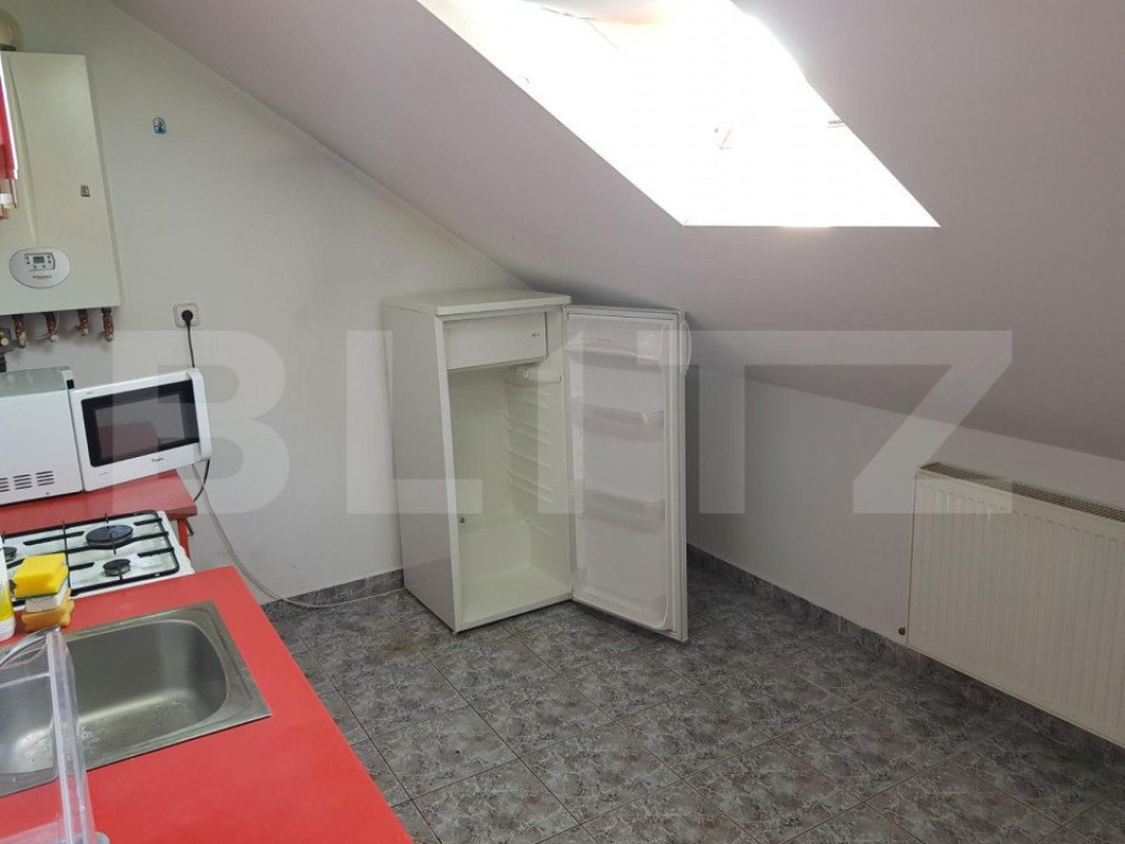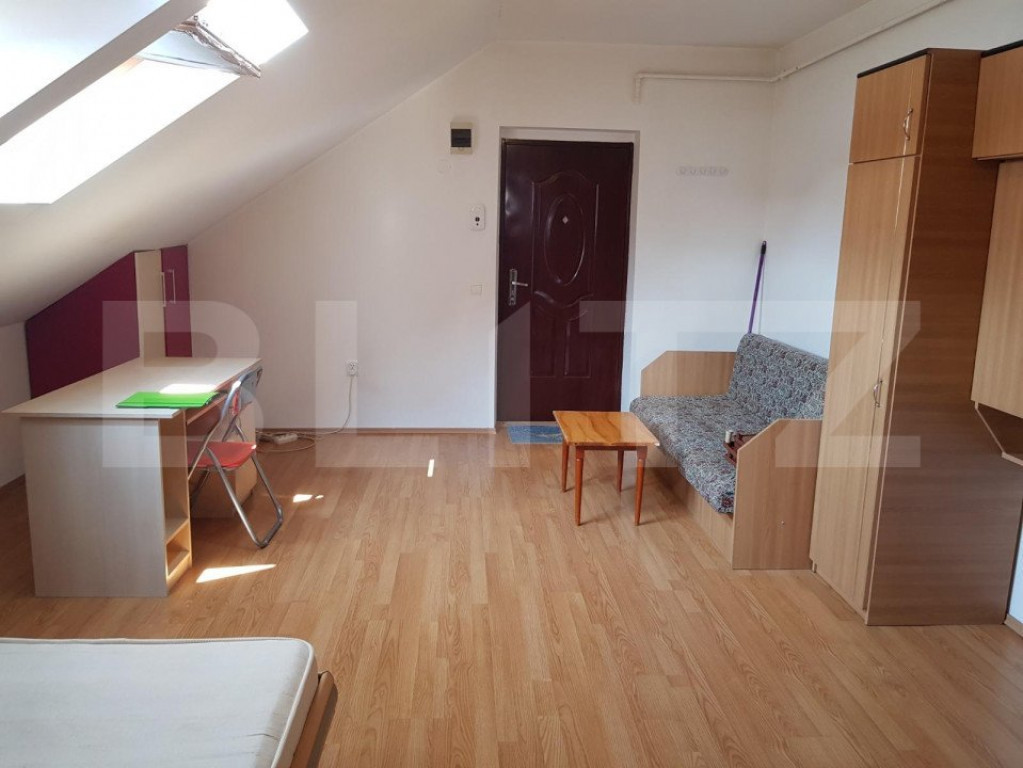 Blitz ofera spre inchiriere apartament cu o camera situat in zona strazii Eroilor. Este situat la mansarda unui bloc cu 4 etaje , se inchiriaza utilat si mobilat. Compartimentarea este decomandata si se prezinta astfel: camera, bucatarie, si o baie. Are o suprafata de 33mp utili. Statia de bus, supermarket, magazine si toate facilitatile sunt la 2 minute distanta. Disponibil din 1 Decembrie! Cod ofertă / ID BLITZ: P51099 Id intern: P51099
