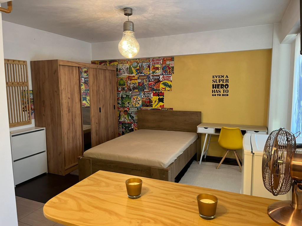 DHD Imobiliare vă propune spre închiriere o garsonieră modernă, situată langa Palas Campus, într-un bloc nou. Locuința se află la parter și reprezintă prima închiriere. Este complet mobilată și utilată, toate piesele de mobilier și electrocasnicele fiind noi. Garsoniera dispune de centrală termică proprie și oferă un nivel ridicat de confort. Zona este ultracentrală, liniștită și cu acces facil către principalele puncte de interes din oraș. Preț: 400 euro/lună. Se percepe garanție și comision. 0769 726 333, Andrei.