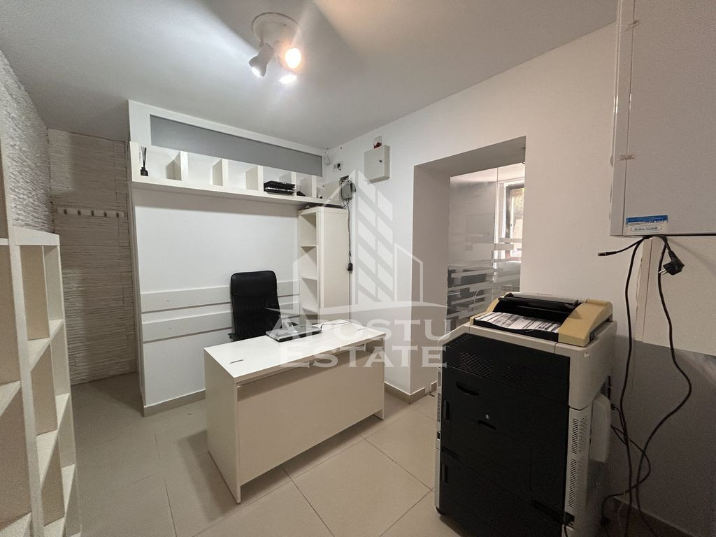 APOSTU ESTATE vă propune spre vânzare un apartament cu 1 cameră, situat la parter, în imediata apropiere a Facultății de Medicină – o zonă extrem de căutată atât pentru locuit, cât și pentru închiriere. Poziție ultracentrală. Suprafață utilă: 27 mp Momentan amenajat ca birou, dar poate fi ușor transformat în spațiu de locuit Compartimentare actuală: cameră principală, spațiu secundar (recepție sau dormitor), baie Renovat complet: instalație electrică și sanitară nouă, centrala proprie pe gaz, geamuri termopan, ușă de intrare solidă Apartamentul oferă versatilitate: se pretează perfect pentru: birou individual / cabinet, închiriere în regim normal sau Airbnb, sau locuință personală într-o zonă premium Preț: 65.000 EUR – negociabil Acte la zi | Disponibil imediat!