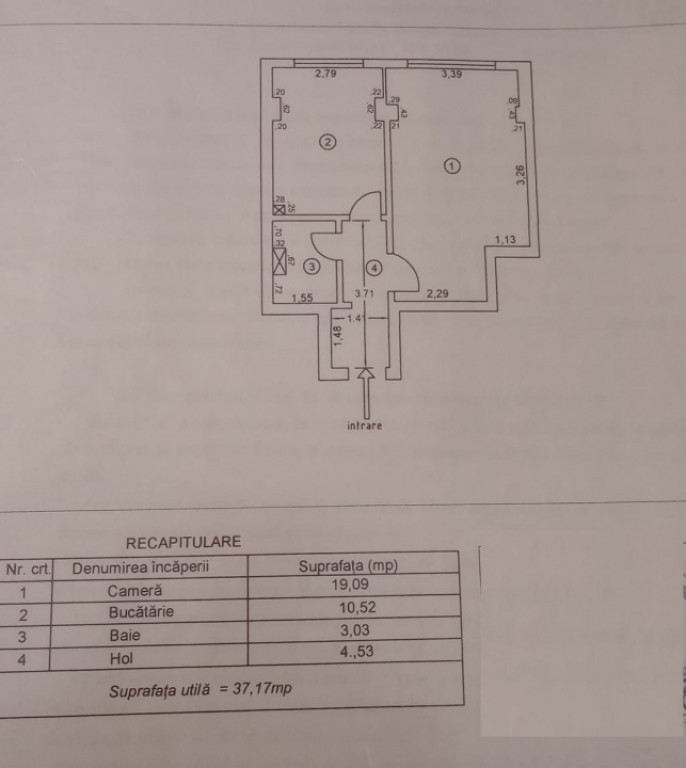 - Apartament 1 camera, zona Vidin, etaj 1/4, suprafata 37mp.