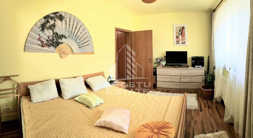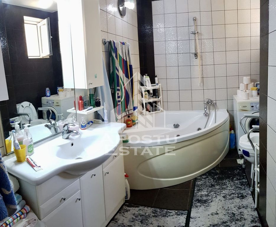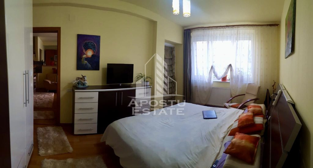 APOSTU ESTATE va propune spre vanzare un apartament spatios, cu 3 camere situat in zona Lipovei. Apartamentul este amplasat la etaj intermediar, etajul 1, cu un imobil cu 8 apartamente. Imobilul beneficiaza de un loc de parcare in curtea privata cu acces automatizat. Ferestrele sunt realizate din tamplarie PVC cu geamuri termopan si rulouri din aluminiu actionate electric. Confortul termic se realizeaza prin intermediul centralei proprii pe gaz cu sistem de incalzire prin calorifere si al aparatului de aer conditionat. Imobilul se afla intr-un bloc din caramida construit in anul 2006 si beneficiaza de o dubla izolare exterioara. Cu o suprafata de 114mp, este compartimentat astfel: - hol de acces - living mare - bucatarie inchisa - balcon de 13mp inchis in geamuri termopan - 2 dormitoare spatioase decomandate - baie cu cada cu hidromasaj - wc serviciu Ambele bai sunt cu geam pentru aerisire. Proprietatea se vinde mobilata si utilata cum se vede in imagini. Va asteptam cu drag la o vizionare!