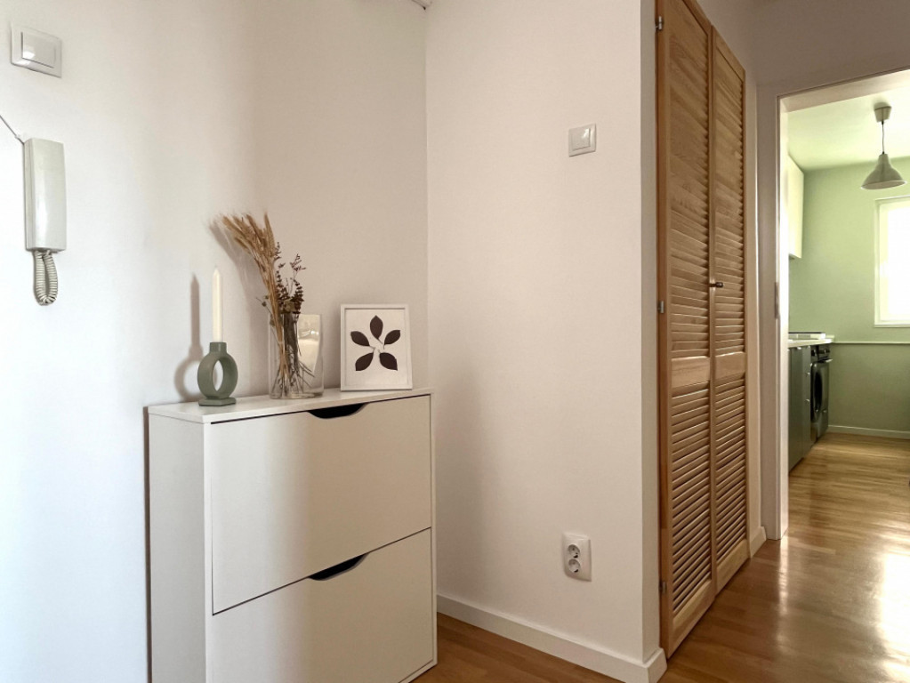 MP Estate oferă în exclusivitate spre închiriere un apartament decomandat PET-FRIENDLY, proaspăt renovat, cu suprafața de 50 mp, situat în zona Crângași, la doar câteva minute de mers pe jos de metrou. Locuința se remarcă prin finisaje noi, compartimentare practică și un nivel ridicat de confort. La intrare, sunteți întâmpinați de un hol spațios, conceput pentru a oferi cât mai mult spațiu de depozitare: dressing generos (debara foarte încăpătoare, ideală pentru organizare) si zonă specială pentru încălțăminte. Bucătăria este complet utilată și echipată cu electrocasnice premium Samsung – mașină de spălat rufe nouă, mașină de spălat vase, frigider –, plită cu două ochiuri, cuptor cu microunde încorporat, chiuvetă modernă și mobilier nou. De asemenea, beneficiază de loc de luat masa, fiind perfectă atât pentru gătit, cât și pentru socializare. Bucătăria oferă acces către un hol secundar, care leagă armonios zona de zi de dormitor și baie. Livingul este luminos, bine organizat și oferă dublu acces: atât din holul principal, cât și din holul care conectează bucătăria de restul casei. Este dotat cu o canapea cu spații de depozitare, zonă de birou și loc de luat masa, fiind ideal pentru lucru, relaxare și activități zilnice. Tot din living se face accesul către balconul închis, excelent izolat fonic și termic – un spațiu perfect pentru relaxare, citit sau depozitare suplimentară. De asemenea, livingul este dotat cu aer condiționat, pentru confort pe tot parcursul anului. Dormitorul oferă intimitate, lumină naturală și multiple soluții de depozitare, fiind conceput pentru a crea un spațiu cât mai ordonat și confortabil. Baia este complet renovată și modernizată, cu finisaje de calitate și aspect impecabil. În tot apartamentul s-au montat plase la geamuri, iar renovările recente conferă locuinței un aspect fresh, curat și primitor. Apartamentul nu este dotat cu televizoare, oferind flexibilitate chiriașului să își amenajeze media după preferințe. Este o locuință ideală pentru persoane sau cupluri care caută un apartament complet renovat, bine compartimentat, luminos și PET-FRIENDLY, într-o zonă liniștită și cu acces rapid la metrou. Id intern: P221962