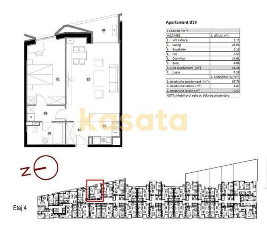 Suprafața utilă 56 m²