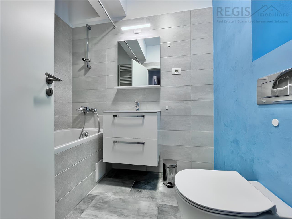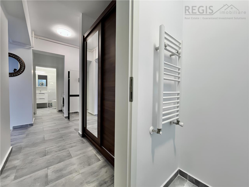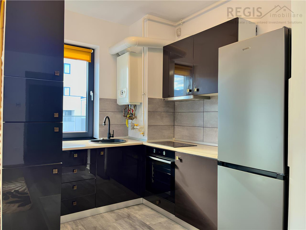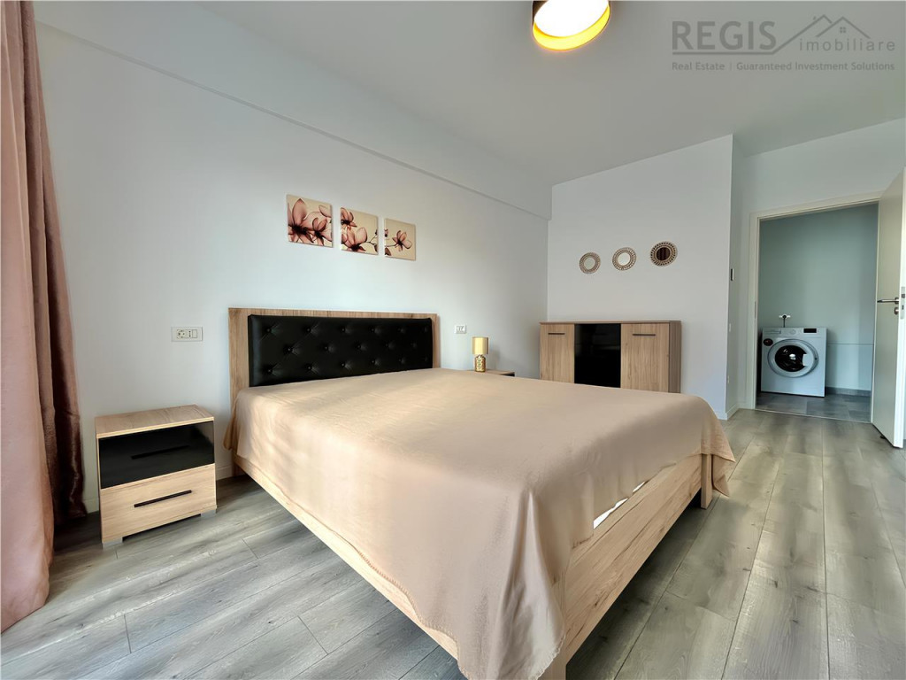 ID intern: 5253 Pentru orice contraoferta, nu ezitati sa ma contactati! REGIS Imobiliare va propune spre inchiriere un apartament in Transilvania Residence 2. Acesta se afla in Noua, pe str. Nucului 48 la 800 m de lac. Zona este un bun punct de pornire spre drumetii si, totodata, este mai putin poluata. Detalii: - Suprafata 54 mp utili 14 balcon - 2 camere cu 2 bai - Etajul 8/10 - Centrala proprie - Incalzire prin pardoseala sau calorifer - Orientare V - Loc parcare Compartimentare open space: - living cu bucatarie, dormitor, hol, 2 bai si balcon - o baie de servici si cealalta cu cada - in balcon se poate intra din ambele camere Complet utilat cu: - plita, cuptor, hota, frigider, masina de spalat rufe si TV Detalii imobil: - Finalizat in 2023 cu structura din beton armat si zidarie din caramida - Bariera si supraveghere video 24/7 - Lift Zona: - Lacul Noua (800 m) - Parc Aventura (1 km) - Statie autobuz Rozmarinului (300 m) - Supermarket Carrefour, Mega Image, Profi si Penny (300 m - 550 m) - Sala de sport Grand Fitness (5 min) - Easy Box (240 m) Inchirierea se realizeaza prin plata de 1 luna chirie, 600 eur garantie si comision agentie. Comisionul este 50% TVA din valoarea chiriei pe o singura luna. Va astept cu drag la vizionare!