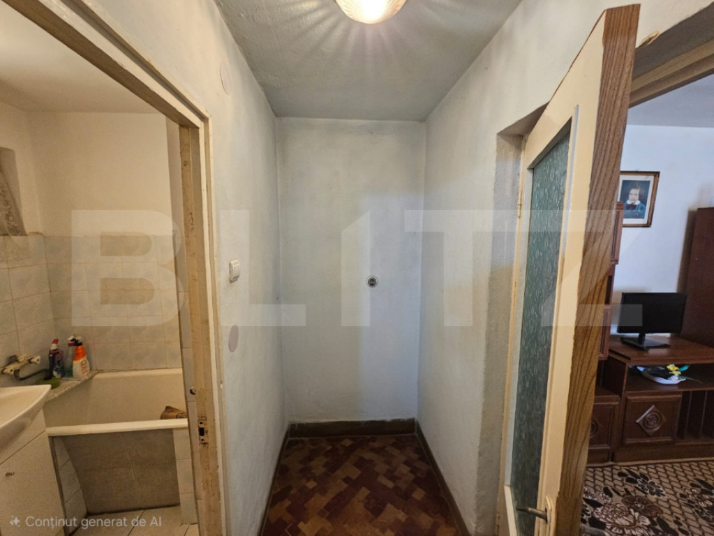 Blitz vă propune spre vânzare un apartament semidecomandat cu 2 camere, situat la parterul unui bloc cu 4 etaje din Cugir, având o suprafață utilă de 37 mp. Locuința dispune de o compartimentare practică, fiind potrivită atât pentru locuit, cât și ca investiție. Apartamentul este locuibil și se poate muta imediat, însă necesită unele renovări pentru a fi adus la un standard modern. În prezent, încălzirea se realizează prin convector pe gaz, fiind necesară instalarea unei centrale termice și a caloriferelor pentru un plus de confort. Imobilul beneficiază de balcon, oferind un spațiu suplimentar util pentru relaxare sau depozitare. Poziționarea la parter îl face ușor accesibil, fiind ideal inclusiv pentru persoane în vârstă sau familii cu copii. Oportunitate bună pentru cei care își doresc să personalizeze locuința după propriul gust, într-o zonă liniștită din Cugir. Cod ofertă / ID BLITZ: P167968 Id intern: P167968