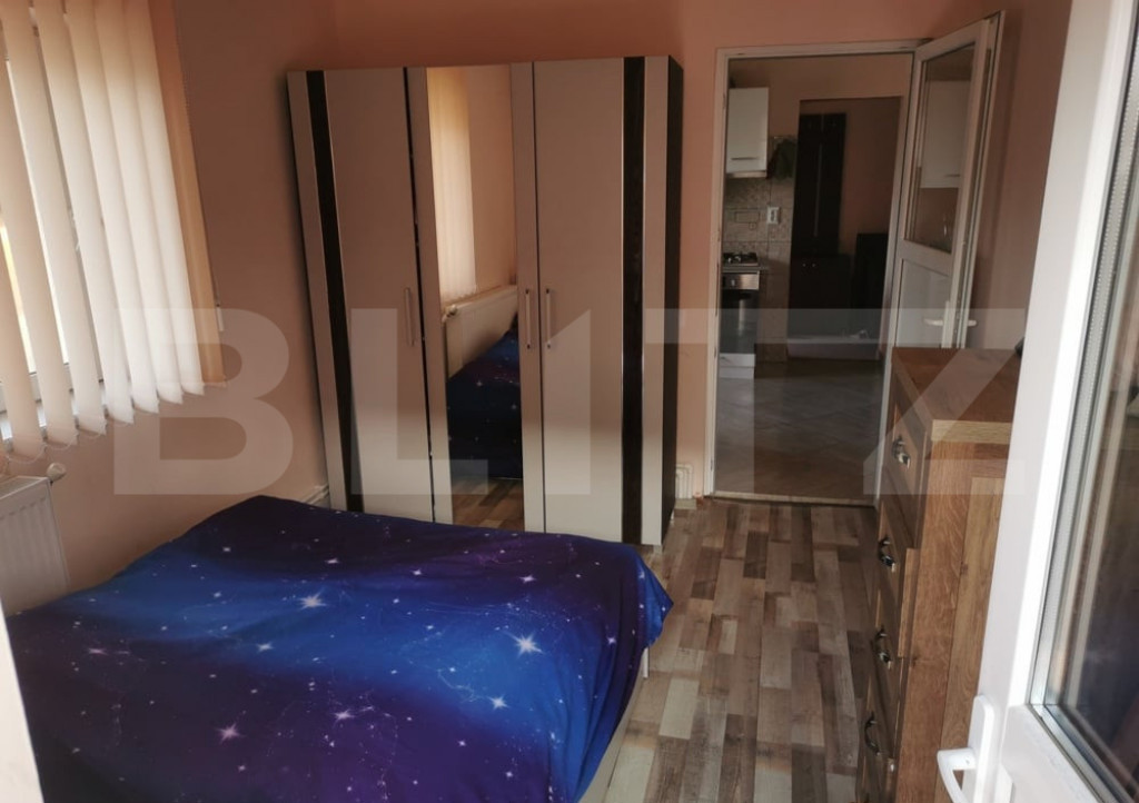 Blitz vă propune spre închiriere un apartament cu 2 camere, complet separat, situat la casă, în zona Podu de Fier – Pădurii, într-o locație liniștită, cu circulație auto restrânsă (fundac), dar foarte aproape de puncte de interes din centrul orașului. Apartamentul a fost complet renovat în 2022, este mobilat și utilat modern, având o compartimentare practică și funcțională. Caracteristici principale: - 2 camere separate - Centrală termică proprie pe gaz - Finisaje moderne: gresie, faianță - Complet mobilat și utilat - Acces la curte cu grădină, terasă și zonă de grătar Dotări: - Mașină de spălat - Frigider - Aragaz - TV - Internet Localizare excelentă, la aproximativ 150 m de stația Pădurii, cu acces rapid către: - Centru Civic – 700 m - Facultatea de Medicină – 1,5 km - Iulius Mall – 1,2 km - Palas Mall – 1,7 km - Piața Chirilă – 500 m Preț: 400 euro/lună Garanție: 400 euro Apartamentul este ideal pentru persoane care își doresc confort, liniște și acces facil către zona centrală a orașului. Cod ofertă / ID BLITZ: P161461 Id intern: P161461