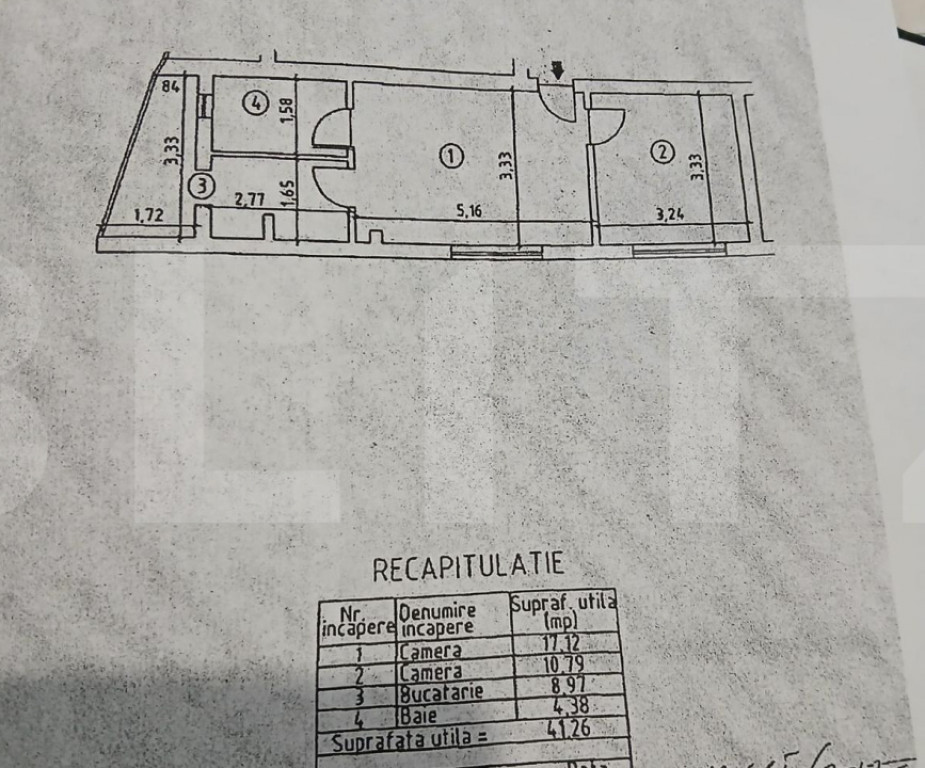 Blitz propune spre vanzare un apartament cu 2 camere, semidecomandat, situat în zona Sălaj, la etajul 4 din 5 al unui bloc solid construit în anul 2011. Locuința are o suprafață utilă de 41 mp, la care se adaugă balconul, fiind ideală pentru un cuplu sau o persoană care își dorește confort și acces rapid către principalele puncte de interes. Apartamentul dispune de centrală termică proprie, ceea ce asigură independență și costuri reduse la întreținere. Compartimentarea este eficientă, oferind un spațiu aerisit și ușor de amenajat. Blocul este bine întreținut, cu vecini civilizați și acces facil la mijloace de transport în comun, magazine, școli și alte servicii din zonă. ???? Puncte forte: Bloc nou, finalizat în 2011 Centrală proprie Etaj intermediar (4/5) Zonă liniștită, bine conectată la oraș Cod ofertă / ID BLITZ: P155776 Id intern: P155776