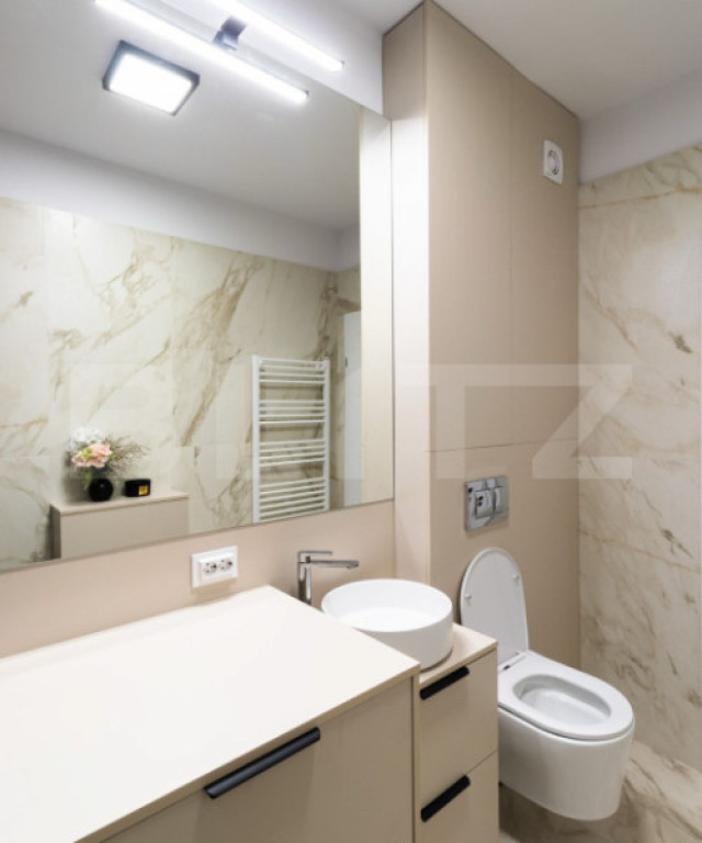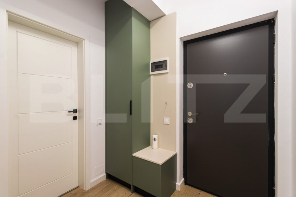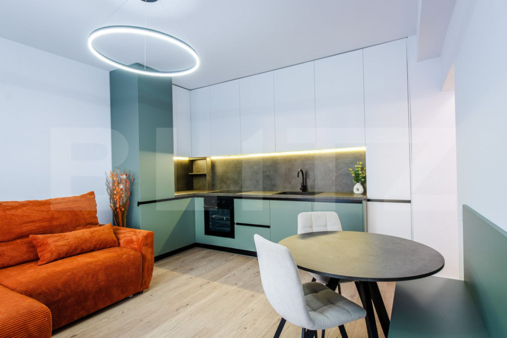 Blitz propune pentru vanzare un apartament de 2 camere in zona Terra. Acest apartament beneficiază de proximitatea față de stațiile de autobuz, magazine, farmacii, gradinite si zone verzi. Amplasat la etajul 3 al unui imobil cu regim de înălțime P+3, finalizat în anul 2024, apartamentul are o suprafață utilă de 41 mp plus o terasa de 10 mp. Compartimentarea acestuia este semidecomandata si constă în următoarele: hol, living open space cu bucatarie, 1 dormitor, baie si terasa. Apartamentul se vinde complet finisat și mobilat lux, cu finisaje de calitate, cum se v-a prezenta la vizionare. Detalii finisaje și dotări: - Parchet de 10 mm grosime; - Uși de interior SAFEX; – MDF/PAL; - Plinte din duropolimer;- Ușă de intrare metalică; - Glafuri din travertin natural; - Ferestre termopan (izolare termică și fonică foarte bună); - Vopsea lavabilă de calitate superioară - Corpuri de iluminat LED (consum redus, aspect modern); - Prize și întrerupătoare SCHNEIDER; - Mobilier realizat din PAL + MDF EGGER. Optional se poate achizitiona un loc de parcare subteran cu CF la pretul de 5500 de euro. Va asteptam sa vizionati acest apartament in zona buna si promitem ca nu o sa fiti dezamagiti! Cod ofertă / ID BLITZ: P156575 Id intern: P156575