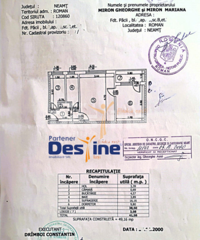 DESTINE IMOBILIARE vă prezintă spre vânzare: Apartament cu 2 camere model NEDECOMANDAT – cartier Smirodava din Roman Preț: 38.900 €uro Informatii utile despre proprietate: - Imobil construit in anul 1972 - Suprafață utila totala de 42 mp - Etaj - 4 din 4 cu POD pentru depozitare Avantajele cheie ale locuinței: Centrală termică proprie Tâmplărie din PVC cu geam TRIPAN Baie cu fereastră pentru aerisire naturală BALCON închis cu tâmplărie din PVC izolație exterioară cu VATĂ BAZALTICĂ BOXĂ la subsol pentru depozitare POD pentru depozitare etc. Nu lăsa pe mâine, ce poți cumpăra astăzi. Vino la vizionare: Cod ofertă: P - 4961 Notă: Obține creditul dorit mai simplu ca niciodată. Nu mai alerga pe la toate băncile. Noi facem treaba în locul tău, absolut GRATUIT. Primești asistență personalizată de la dosar până la aprobare, indiferent de tipul de credit ales. Economisește timp și bani. Contactează-ne acum pentru o analiză gratuită! Id intern: P4961