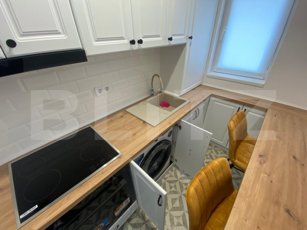 Blitz oferă spre vânzare un apartament elegant, cu 2 camere, decomandat, complet renovat și mobilat modern, situat într-o zonă liniștită și accesibilă din cartierul Mănăștur, în apropierea Academiei de Muzică și la doar 2 minute de stațiile de transport în comun. Detalii proprietate: • Suprafață utilă: 42 mp • Balcon: 3 mp • Etaj: 9 din 10, într-un imobil cu lift nou • Compartimentare: 1 dormitor, 1 living care are o canapea extensibilă, 1 bucătărie separată, 1 baie • Dotări: • Centrală proprie pe gaz • Cuptor, hotă, mașină de spălat haine, combină frigorifică, plită • 2 televizoare LED • Mobilier de bucătărie la comandă din MDF • Dormitor complet echipat: pat cu ladă dedesubt, dressing, birou Avantaje: • Totul este absolut nou — instalații, finisaje, mobilă și electrocasnice • Zonă liniștită, dar bine conectată: 2 minute de autobuz, școli, magazine, zone verzi • Ideal pentru cei care își doresc locuință imediat gata de mutare, fără investiții suplimentare • De asemenea potrivit pentru investiție — mobilat complet, într-o zonă foarte căutată Un apartament modern, compact și bine echipat, care aduce confort imediat și valoare pe termen lung. Pentru vizionare, detalii suplimentare sau programare, vă stau cu drag la dispoziție! Cod ofertă / ID BLITZ: P156317 Id intern: P156317