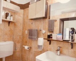 Designul interior îmbină elemente moderne cu accente calde, oferind un aspect primitor și bine întreținut. Finisajele sunt plăcute vizual, iar pardoseala în tonuri închise creează un contrast elegant cu pereții deschiși, amplificând senzația de spațiu și lumină.