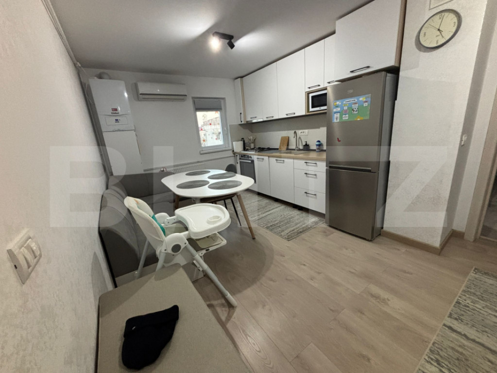 Blitz va propune spre vânzare un apartament cu 2 camere, decomandat, situat în cartierul Dacia, la etajul 4 din 4, într-un bloc cu hidroizolație și acoperiș refăcut. Apartamentul are o suprafață de 54 mp și beneficiază de o poziționare excelentă, cu acces rapid către școli, grădiniță, mijloace de transport în comun și zone comerciale. Imobilul a fost proaspăt renovat complet în anul 2024, folosindu-se materiale de calitate, și se vinde mobilat, fiind gata pentru mutare imediată. Dotări și îmbunătățiri: Instalație electrică schimbată Instalație sanitară schimbată Tâmplărie PVC cu geamuri termopan Balcon închis cu termopan Izolație exterioară Centrală termică Vaillant (montată în 2023, revizii la zi) Aer condiționat Electrocasnice incluse: -mașină de spălat rufe cu uscător -mașină de spălat vase -cuptor electric -plită pe gaz -hotă -cuptor cu microunde -frigider Apartamentul reprezintă o alegere excelentă atât pentru locuință proprie, cât și pentru investiție, datorită zonei foarte căutate și nivelului ridicat de confort. Pentru mai multe detalii sau pentru programarea unei vizionări, nu ezitați să ne contactați! Cod ofertă / ID BLITZ: P163273 Id intern: P163273