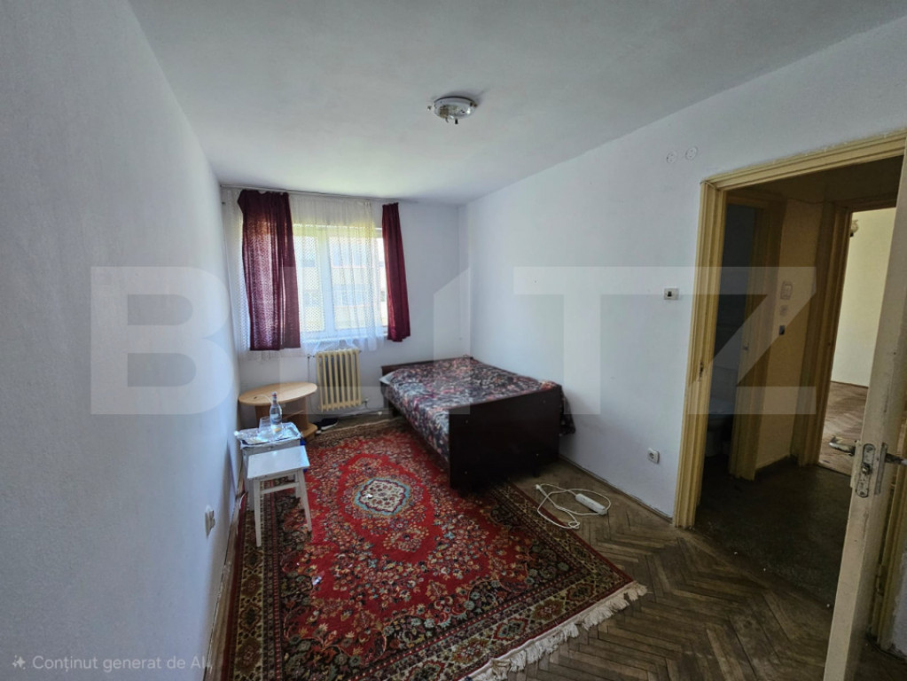 Apartament cu 2 camere de vânzare în Cugir, cu o suprafață de 48 mp, semidecomandat, ideal pentru cei care își doresc să-l amenajeze după propriul gust. Locuința este compusă din living, dormitor, bucătărie, debara și balcon, oferind un spațiu bine compartimentat și funcțional. Apartamentul se află la etajul 1 al unui bloc liniștit, fiind potrivit atât pentru locuit, cât și pentru investiție. Proprietatea necesită renovare, ceea ce reprezintă o oportunitate excelentă de personalizare completă. Se vinde nemobilat și neutilat, oferind libertate totală în amenajare. O alegere potrivită pentru cei care caută un apartament într-o zonă calmă, cu potențial de transformare într-un cămin confortabil. Cod ofertă / ID BLITZ: P169850 Id intern: P169850