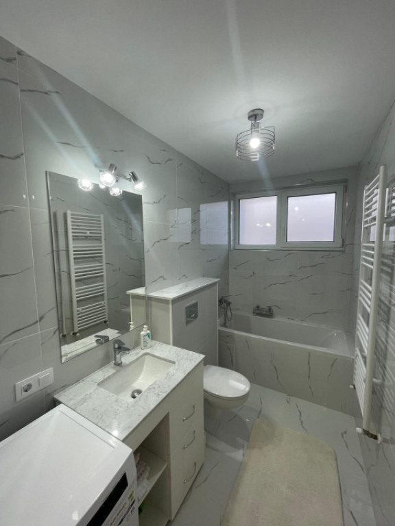 Blitz va oferă spre închiriere un apartament cu 2 camere, situat la etajul 2, într-o zonă rezidențială liniștită. Ideal pentru cupluri sau persoane care caută confort și liniște. Blocul este nou, iar apartamentul beneficiază de priveliște deschisă și finisaje de calitate superioară. Suprafață utilă: 48 mp Compartimentare: • Hol de acces • Baie cu geam și finisaje elegante • Living luminos cu bucătărie open-space • Dormitor • Balcon cu vedere frumoasă Dotări și avantaje: -Mobilat și utilat complet, gata de mutare -Mobilier de bucătărie, masă și scaune din lemn masiv, realizate pe comandă -Încălzire în pardoseală -Loc de parcare inclus Avantaje: -Zonă rezidențială sigură, verde și liniștită -Bloc nou, bine întreținut -Apartament luminos cu priveliște deschisă -Baie cu geam și finisaje elegante ???? Chirie: 350 €/lună Cod ofertă / ID BLITZ: P156970 Id intern: P156970
