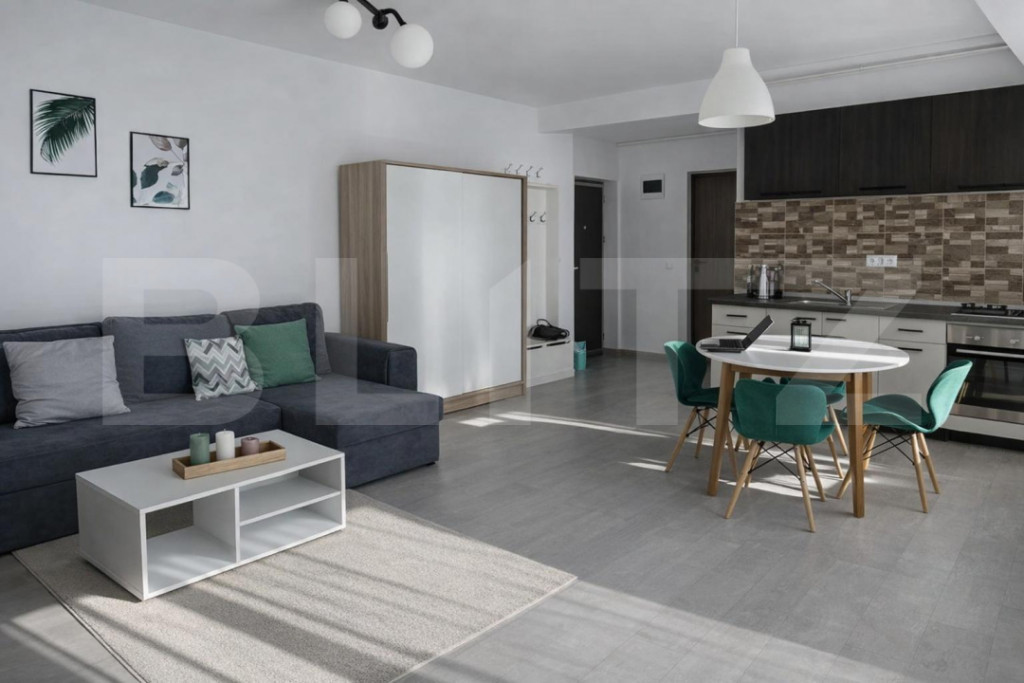Blitz propune spre vânzare un apartament cochet cu 2 camere, situat în zona Terra, într-un imobil modern, construit în anul 2018. Apartamentul este poziționat la etajul 2 al unui bloc cu regim de înălțime P+3, oferind un echilibru ideal între confort și accesibilitate. Cu o suprafață utilă de 48,12 mp, la care se adaugă două balcoane însumând 5,18 mp, locuința este inteligent compartimentată astfel: hol de acces, bucătărie open space cu living luminos, dormitor, baie și două balcoane ce oferă spațiu suplimentar pentru relaxare. Apartamentul se vinde complet mobilat și utilat, fiind pregătit pentru mutare imediată. Este dotat cu centrală termică Bosch în condensare, geamuri termopan cu 3 foi și ușă metalică solidă, asigurând confort termic și siguranță. Electrocasnicele incluse sunt: frigider, plită pe gaz, cuptor electric, cuptor cu microunde, hotă, mașină de spălat rufe și TV. Orientarea sudică oferă lumină naturală pe tot parcursul zilei și un consum redus de energie în sezonul rece. Imobilul este amplasat într-o zonă bine conectată, cu acces rapid la puncte de interes precum stații de autobuz, supermarketuri, farmacii, școli și grădinițe. Se poate achiziționa un loc de parcare exterior cu carte funciară separată, la prețul de 5.000 EUR. Un apartament ideal atât pentru locuit, cât și pentru investiție. Va asteptam la vizionare! Cod ofertă / ID BLITZ: P163905 Id intern: P163905