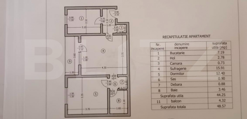 Blitz va propune spre vânzare un apartament de 2 camere, situat la etajul 3 dintr-un bloc cu 4 etaje,49mp, amplasat excelent – la doar 1 minut de Școala Centrală Câmpina.