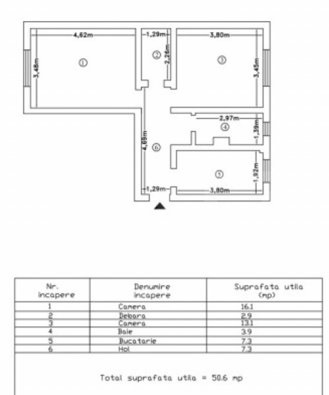 Suprafața utilă 50 m²