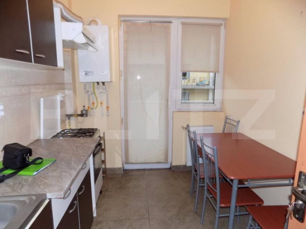 Blitz Imobiliare ofera spre inchiriere un apartament cu 2 camere situat in zona Hotelului Golden Tulip, din cartierul Zorilor. Apartamentul este pozitionat la etajul 3 al unui imobil cu 4 nivele, (care este dotat cu lift) si beneficiaza de o suprafata utila de 50 mp. Compartimentarea este semidecomandata, fiind gandita astfel: living, dormitor, bucatarie închisă, hol, baie si balcon deschis generos. Apartamentul dispune de finisaje noi si mobilier modern, beneficiaza de centrala termica proprie, geamuri termopan cu tamplarie din PVC si usa metalica la intrare. Apartamentul se inchireaza complet mobilat si utilat. Disponibil din 1 Martie Cod ofertă / ID BLITZ: P55638 Id intern: P55638