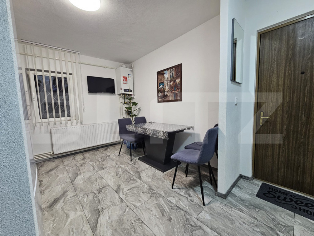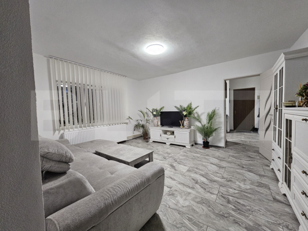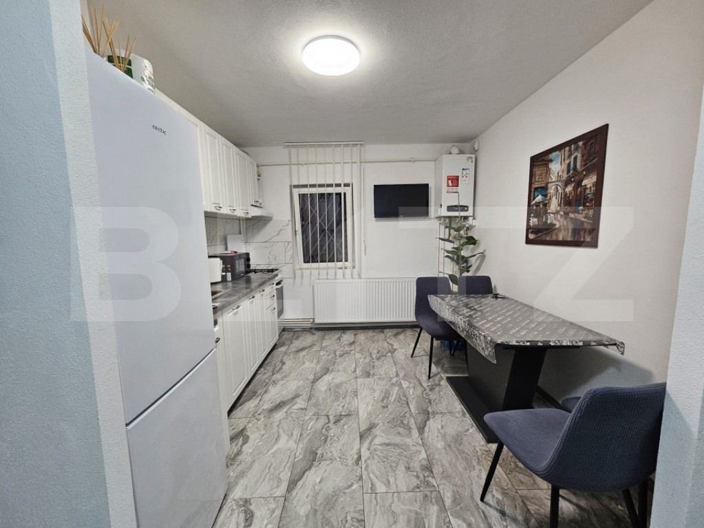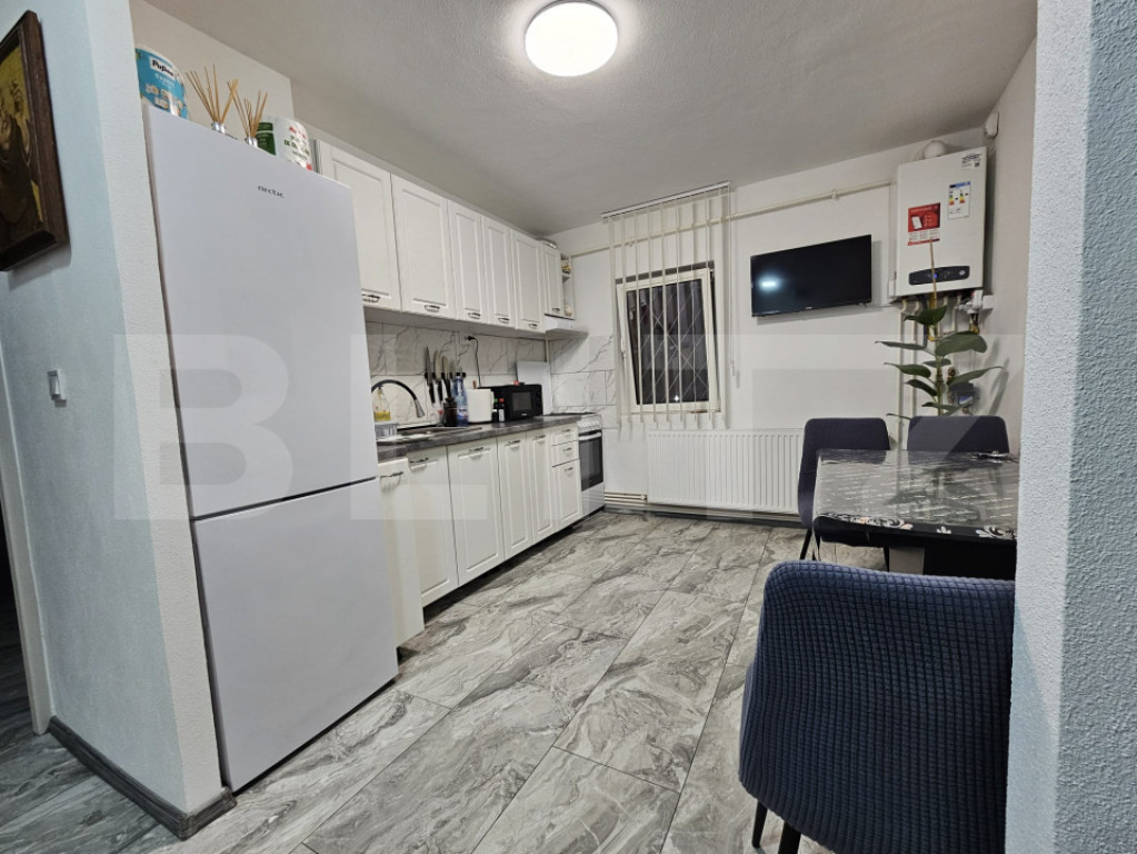 Blitz vă propune spre vânzare un apartament cu 2 camere, situat la parter înalt, într-un bloc anvelopat termic, care oferă un confort excelent pe tot parcursul anului. Locuința este compartimentată eficient, fiind compusă din: -Bucătărie spațioasă cu hol generos, ideală pentru momentele în familie; -Living modern amenajat, luminos și primitor; -Sas cu spațiu de depozitare inteligent integrat; -Dormitor cu dressing generos, perfect organizat; -Baie elegantă cu duș, modernă și funcțională. Apartamentul a fost renovat integral în acest an, până la placa de beton, utilizând doar materiale de calitate superioară. Dispune de centrală proprie pe gaz cu instalație din țevi de cupru și încălzire prin calorifere, pentru eficiență și confort termic optim. De asemenea, instalația electrică a fost înlocuită complet, oferind siguranță și fiabilitate pe termen lung. Blocul este izolat termic exterior, reducând semnificativ costurile de întreținere și sporind confortul locativ. Localizare excelentă: la doar 2 minute de mers pe jos se află un supermarket și un parc, ideale pentru cumpărături rapide și momente de relaxare. Accesul către centrul orașului este facil, cu timp de deplasare de aproximativ 10 minute cu mașina. Acest apartament reprezintă o oportunitate excelentă pentru cei care își doresc o locuință modernă, fără griji, într-o zonă liniștită și bine conectată la oraș. ???? Vă așteptăm la o vizionare, pentru a descoperi personal toate avantajele acestei proprietăți deosebite! Cod ofertă / ID BLITZ: P155740 Id intern: P155740