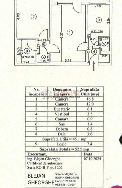 Apartament 2 camere – 52,5 mp – Parcare ADP – Bloc anvelopat – Dragoș Mladinovici nr. 7 Preț: 75.000 € Se vinde apartament cu 2 camere, situat la etajul 9/9, într-un bloc construit în anul 1965, anvelopat termic. Apartamentul are o suprafață de 52,5 mp și este potrivit atât pentru locuit, cât și pentru investiție. Detalii apartament: Suprafață: 52,5 mp Etaj: 9 din 9 Bloc construit în 1965, anvelopat 2 camere Parcare ADP Boxă pentru depozitare Țeavă de gaze trasă în apartament – posibilitate montare centrală proprie Se vinde mobilat sau nemobilat, în funcție de preferința cumpărătorului Adresă: Strada Dragoș Mladinovici nr. 7 Pentru mai multe informații sau pentru programarea unei vizionări, mă puteți contacta în privat sau telefonic. Serviciul nou oferit de PREMIER Imobiliare! Solicita acum VIZIONARE ONLINE pentru aceasta proprietate! COMISION 0% Această proprietate se poate achiziționa prin orice tip de credit bancar. Departamentul nostru financiar Premier Credit Hub vă stă la dispoziție GRATUIT (comision 0%) pentru: - identificarea celei mai bune soluții de finanțare; - întocmirea dosarului bancar complet; - obținerea rapidă a creditului necesar achiziției. Beneficiați de un serviciu ALL IN ONE, cu acces direct la ofertele tuturor băncilor comerciale din România. Se acceptă inclusiv venituri din străinătate, astfel încât fiecare client să poată cumpăra în cele mai avantajoase condiții. Solicitați acum o simulare de credit direct din anunț sau cereți detalii consultantului Premier Imobiliare!
