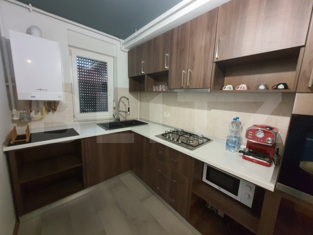 Blitz oferă spre închiriere un apartament complet mobilat, cu o suprafață de 52 mp, situat la parter, cu ieșire directă la grădină proprie de aproximativ 50 mp. Apartament luminos, eficient compartimentat, ideal pentru o persoană sau un cuplu. Este compus dintr-un dormitor cu dressing, sufragerie primitoare dotată cu canapea și aer condiționat, bucătărie complet utilată, baie, hol cu spații de depozitare și acces direct din apartament către grădina proprie. Se închiriază complet mobilat și utilat, fiind disponibil pentru mutare imediată. Încălzirea este asigurată prin centrală termică proprie, iar în preț sunt incluse două locuri de parcare. ???? Pentru detalii suplimentare și programarea unei vizionări, nu ezitați să ne contactați. Cod ofertă / ID BLITZ: P163049 Id intern: P163049